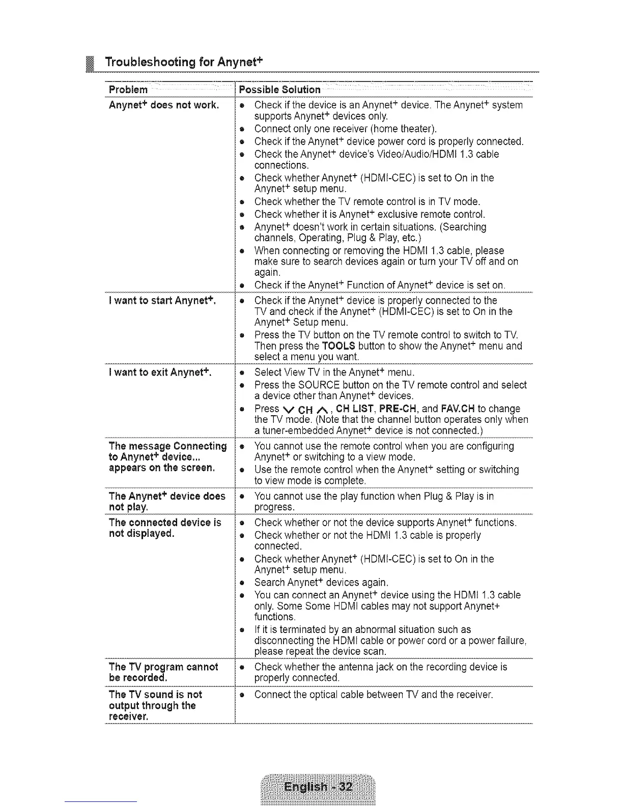 Troubleshootingfor Anynet+