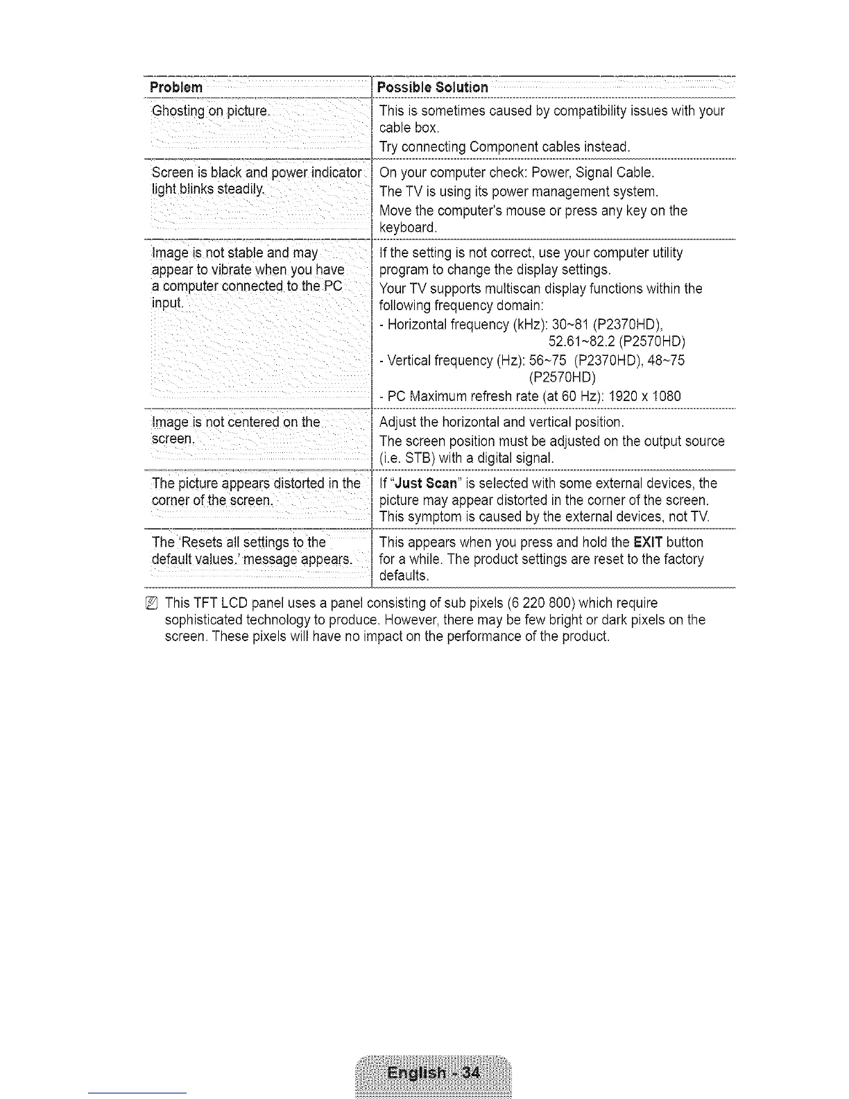 a computer connected to the PC Your TV supports multiscan display functions within the