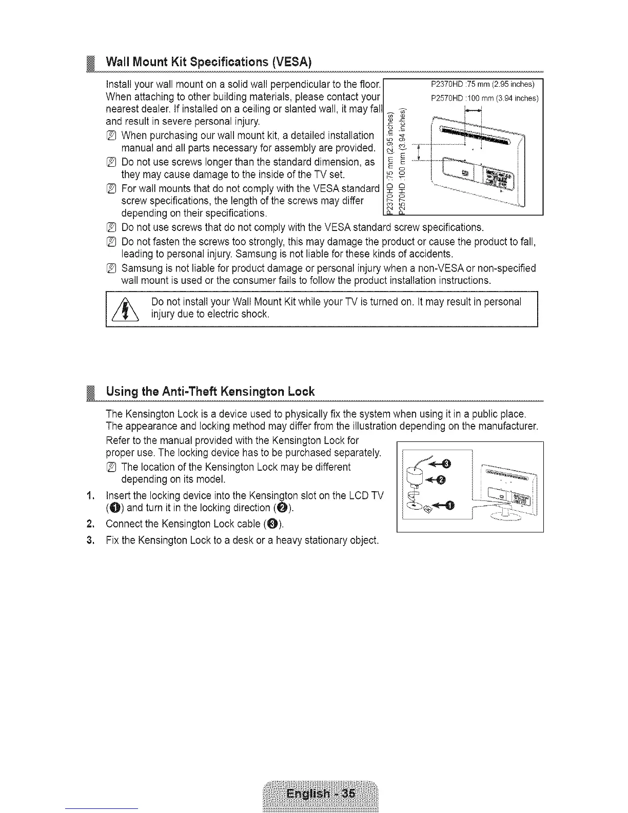 //_ Do not install your Wall Mount Kit while your TV is turned on. It may result in personal