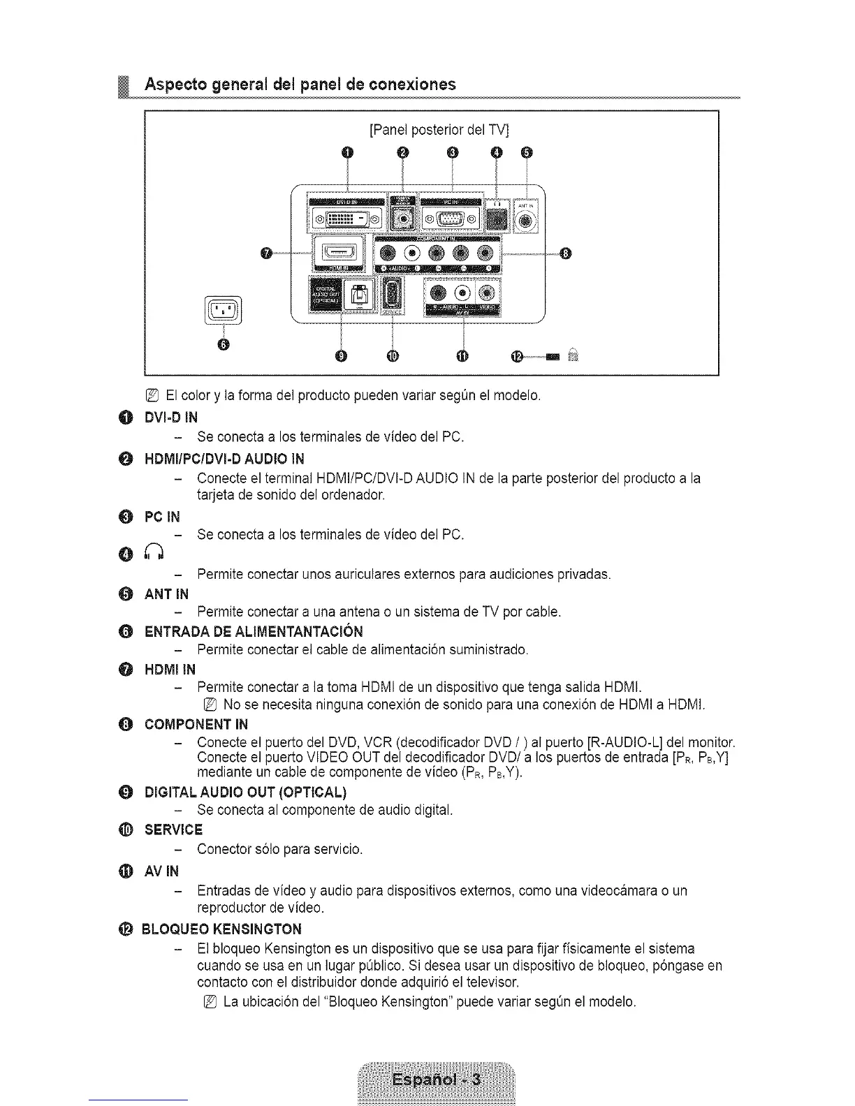 [_ La ubicaci6n del "Bloqueo Kensington" puede variar segOn el mode]o.