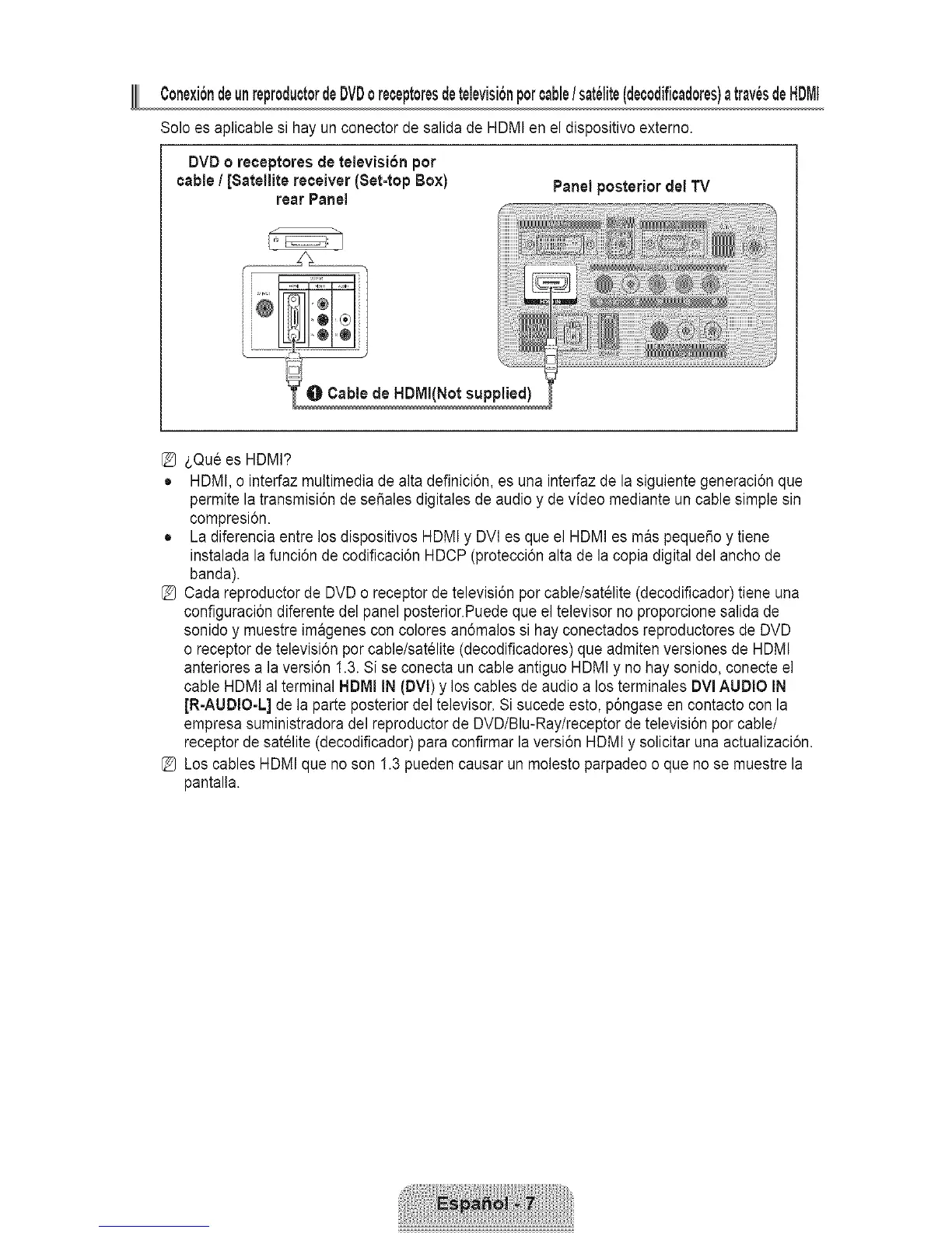[_ Los cables HDMI qua no son 1.3 pueden causar un molesto parpadeo o que no se muestre la