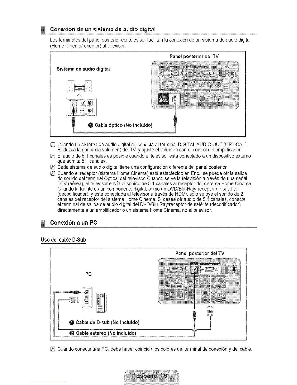 Cable de D-sub (No inctuido)