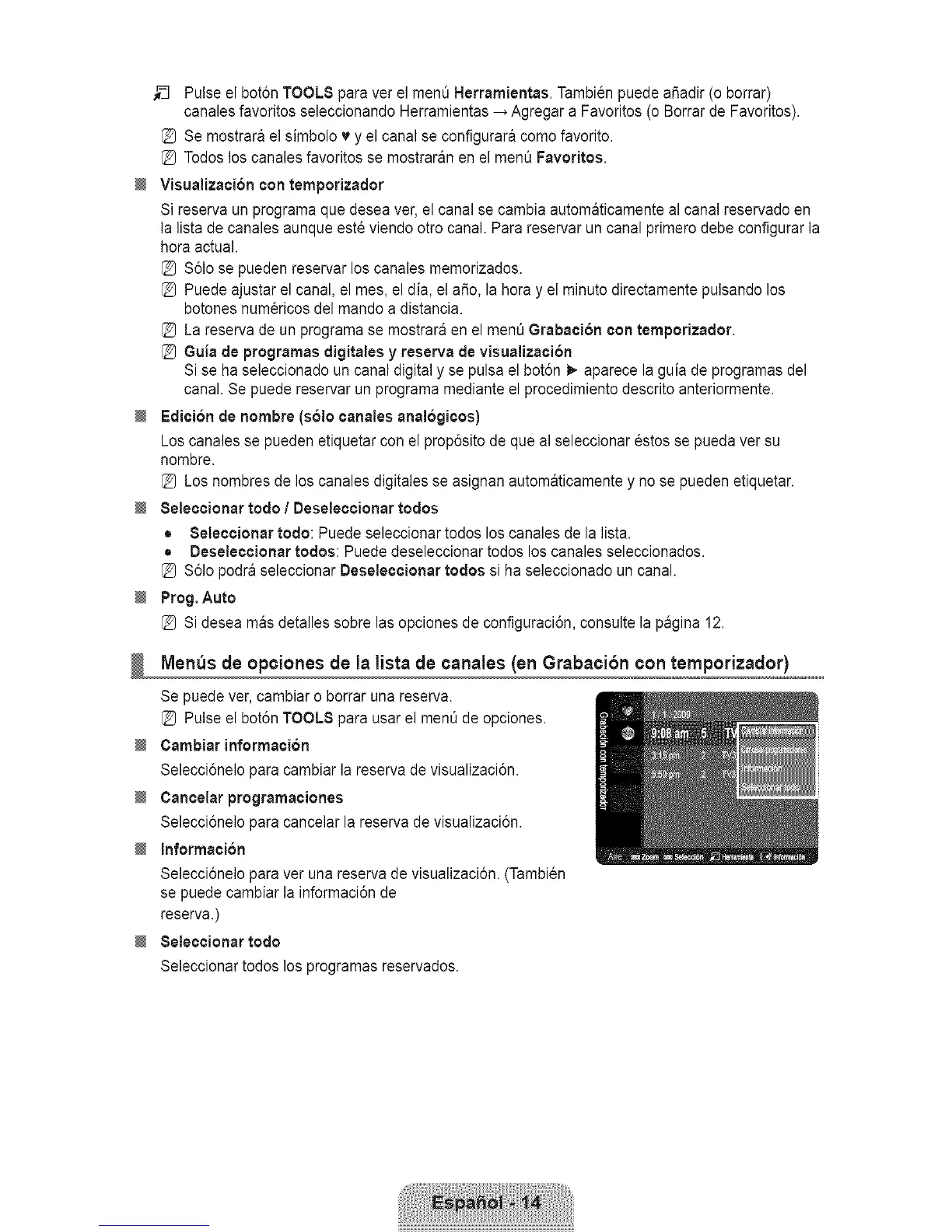 Men_sde opcionesde la lista de canales(onGrabaci6ncontemporizador)