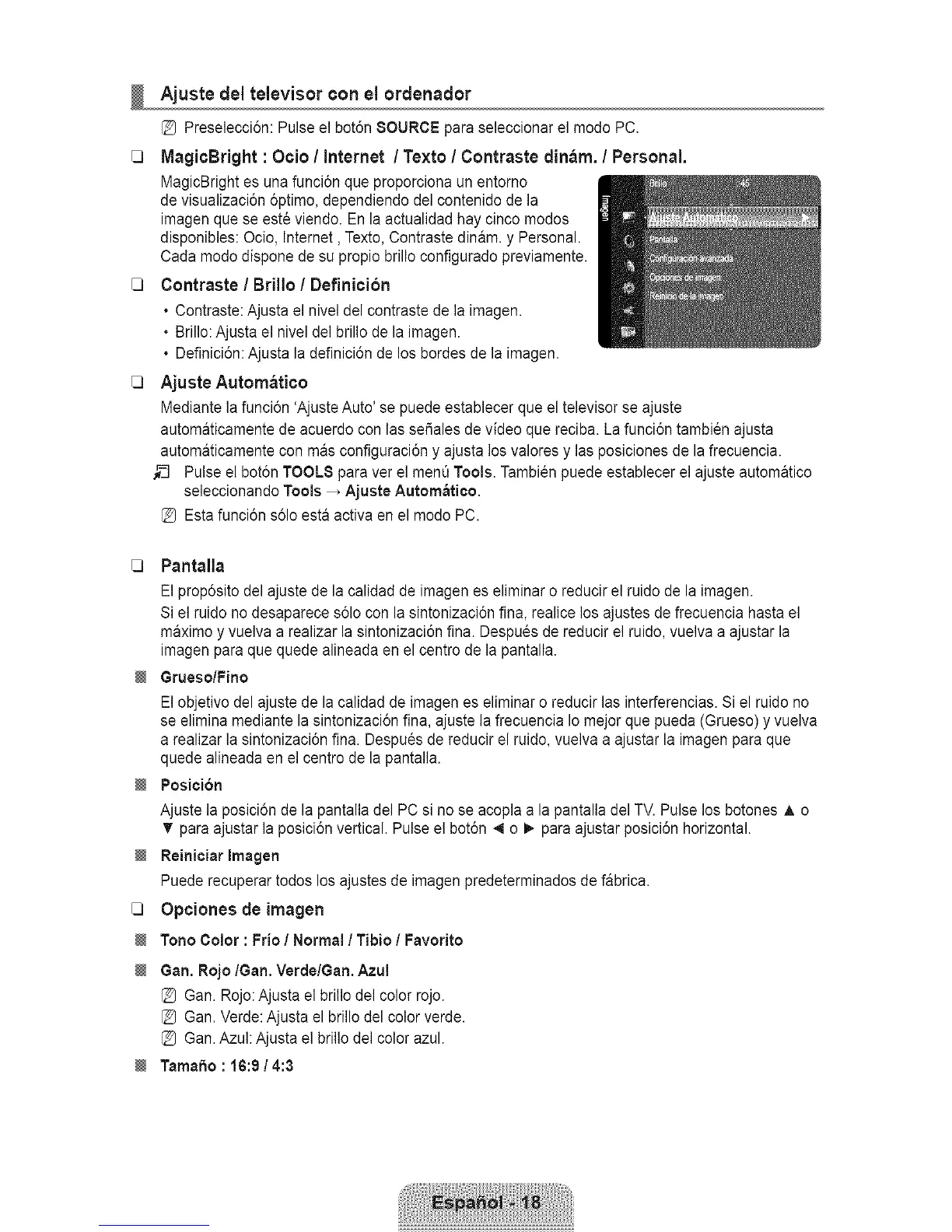 Mediante la funci6n 'Ajuste Auto' se puede establecer que el televisor se ajuste