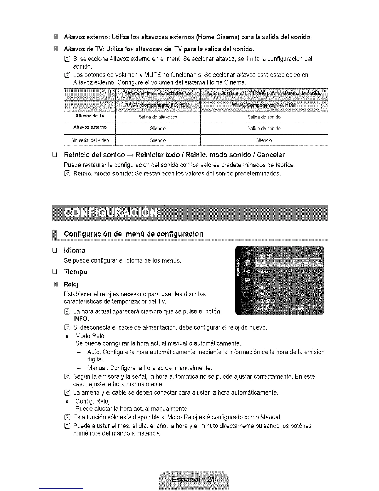 [_ Si desconecta el cable de alimentaci6n, debe configurar el reloj de nuevo.