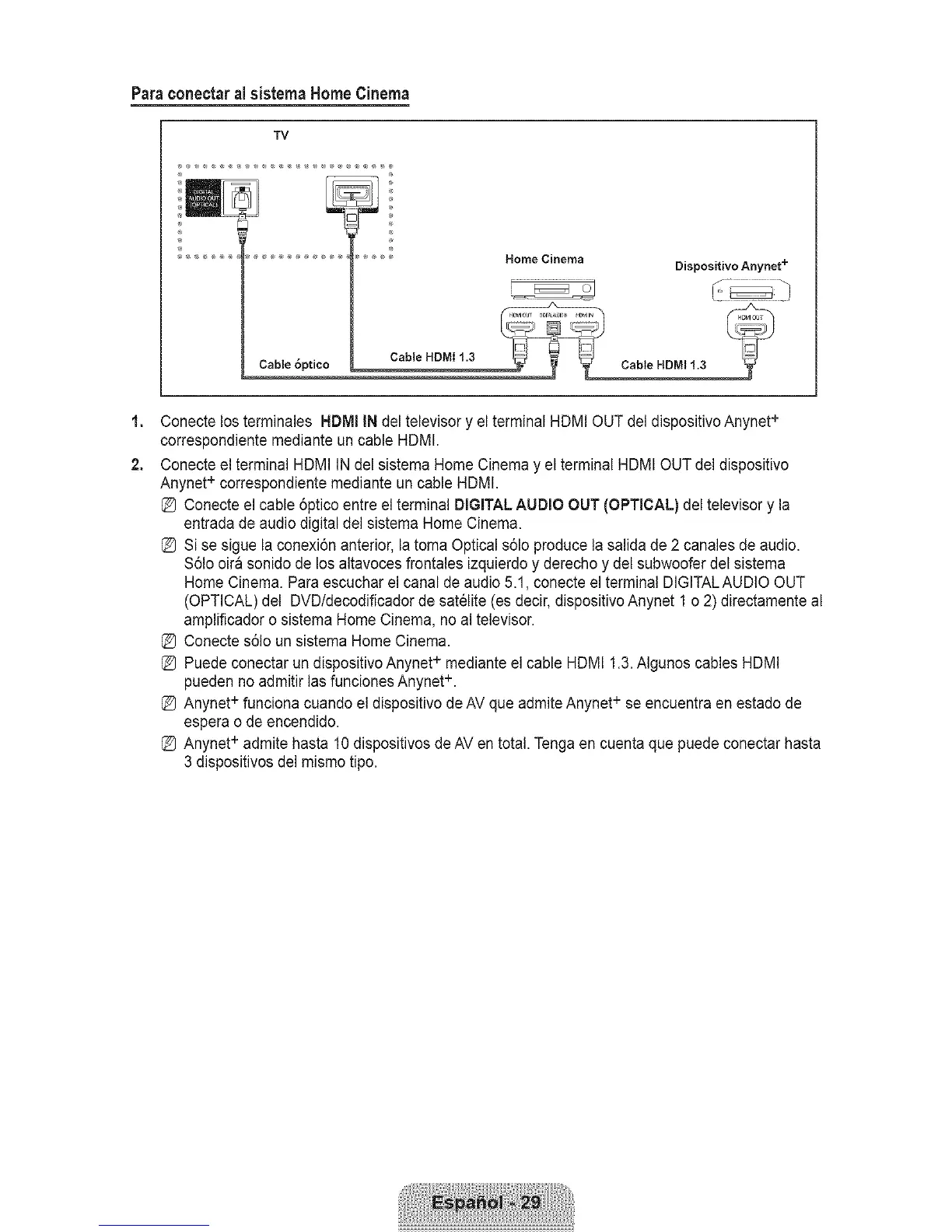 I_ Puede conectar un dispositivo Anynet + mediante el cable HDMI 1.3. Algunos cables HDMI
