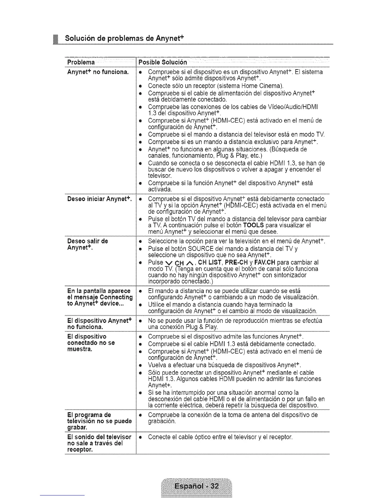 • Anynet + no funciona en algunas situaciones. (BQsqueda de