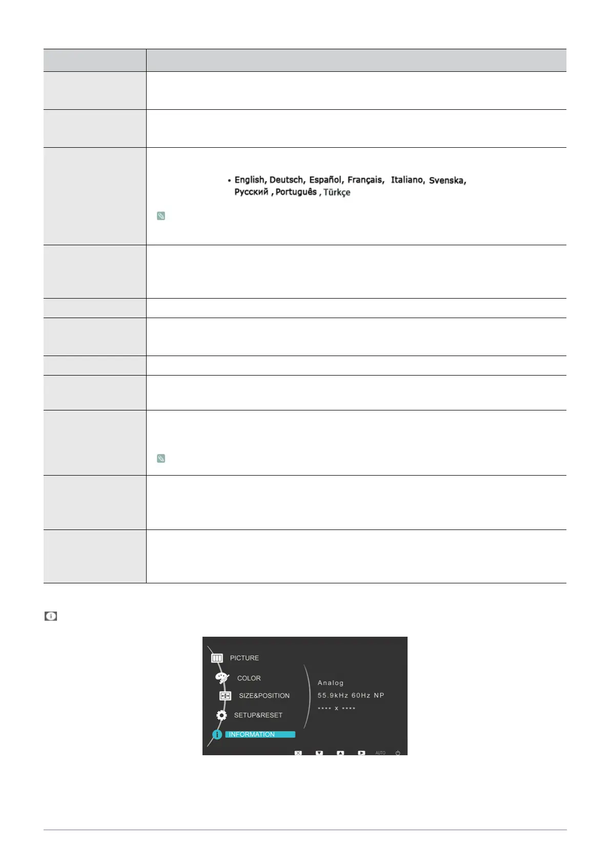 Language Select a language for the OSD.