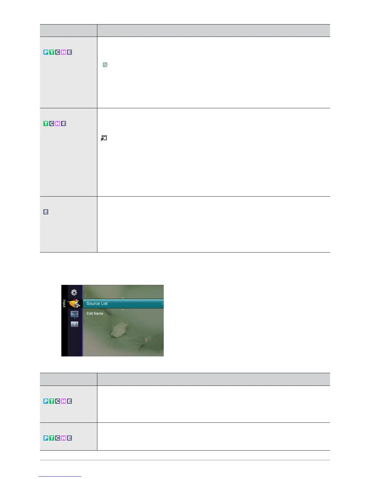 Source List Use to select <PC>, <TV> or an external input source connected to the Monitor.Use to select the