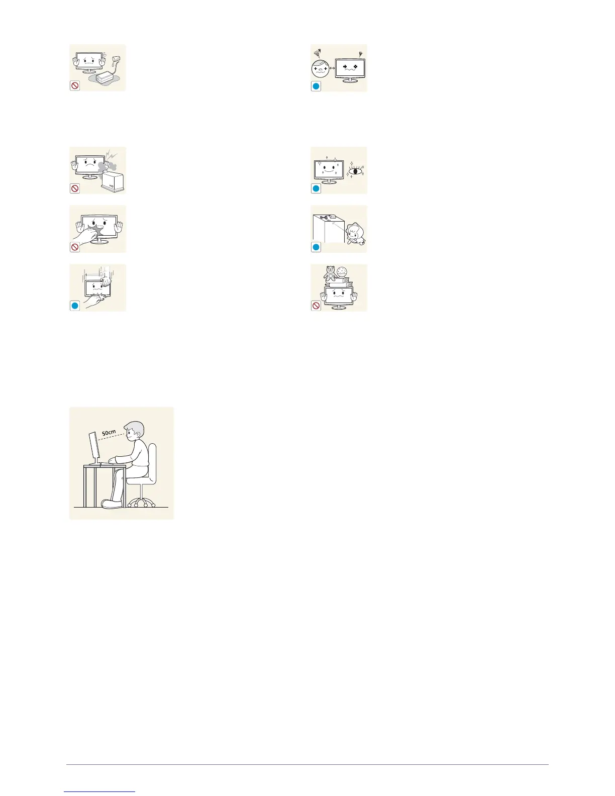 • Keep a distance of 45~50 cm from your eyes to the screen. Look down at the screen and