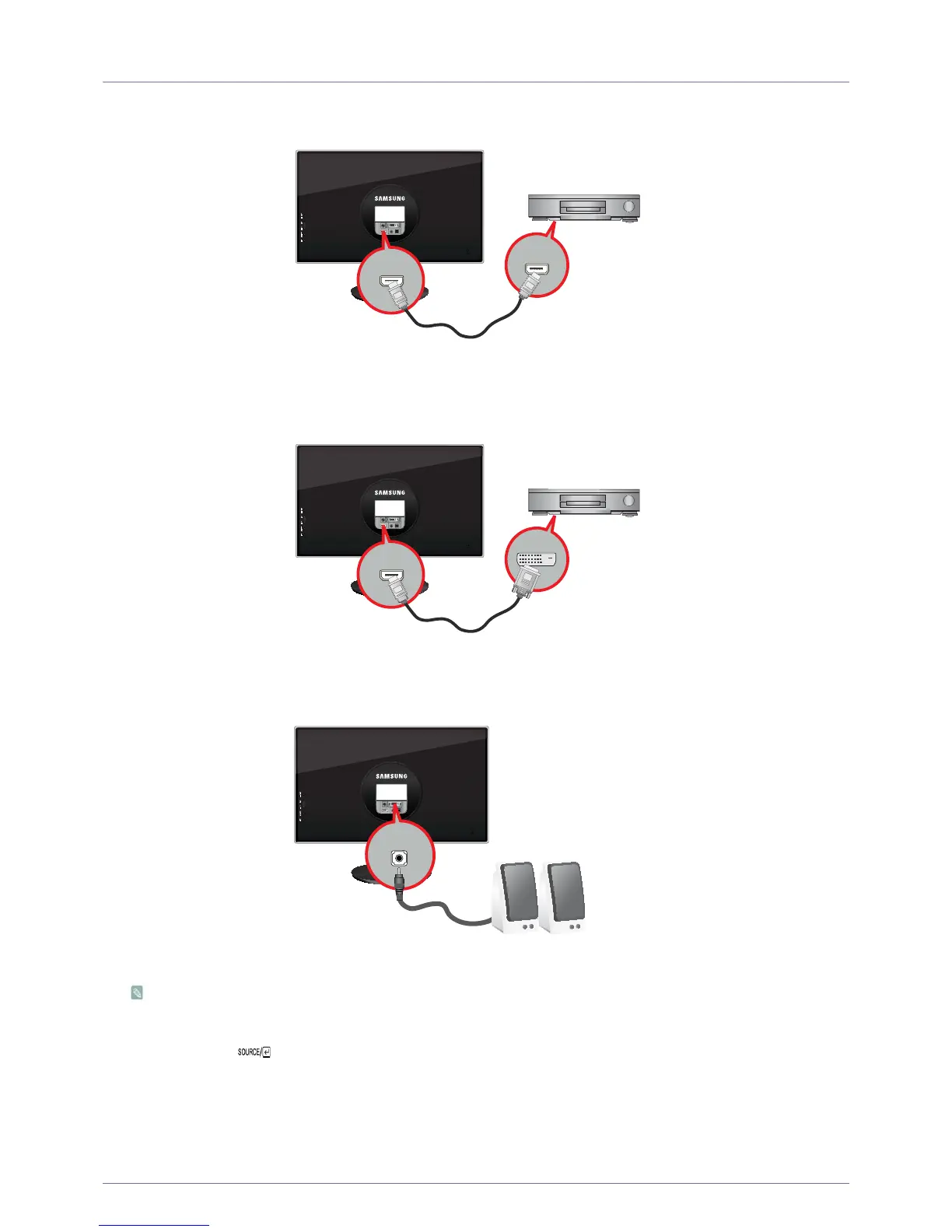 • This product won't make any sound when only the HDMI cable is connected without a speaker connected.
