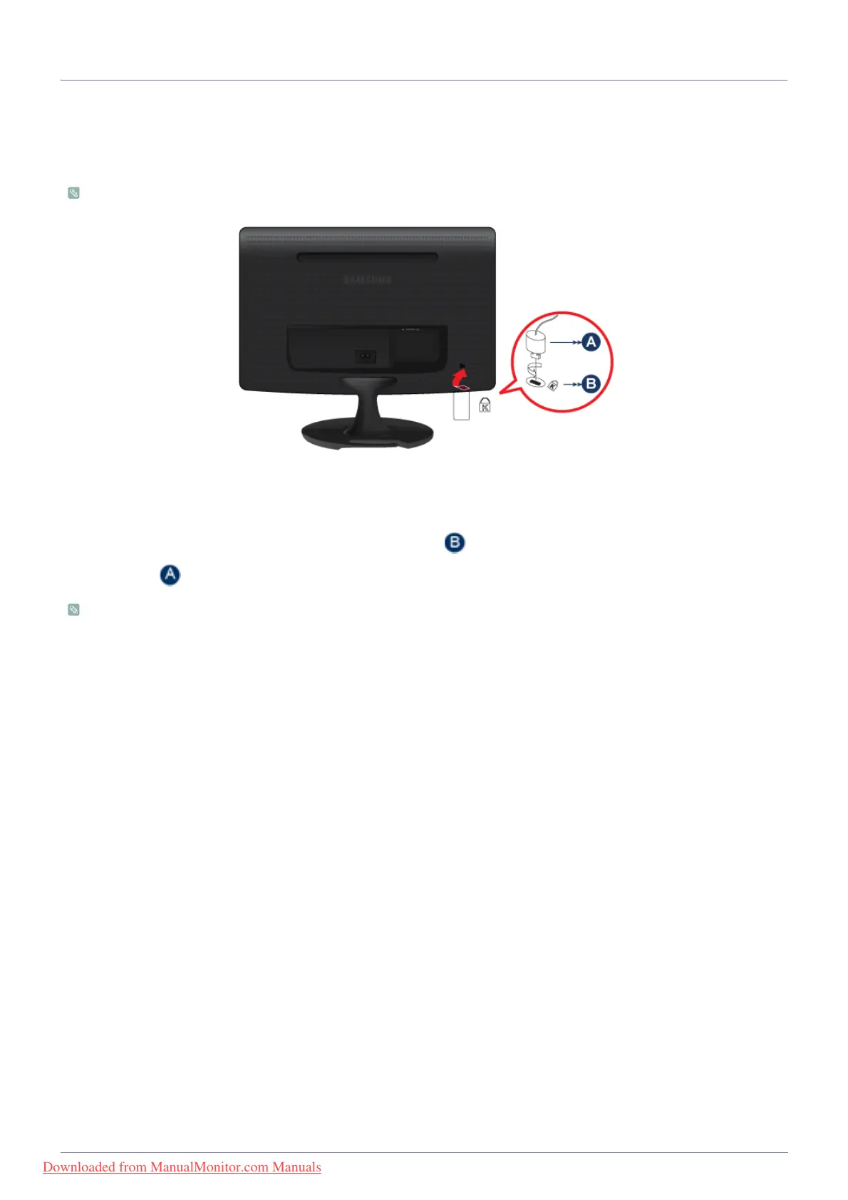 3. Insert the locking device into the Kensington slot on the Monitor( ).