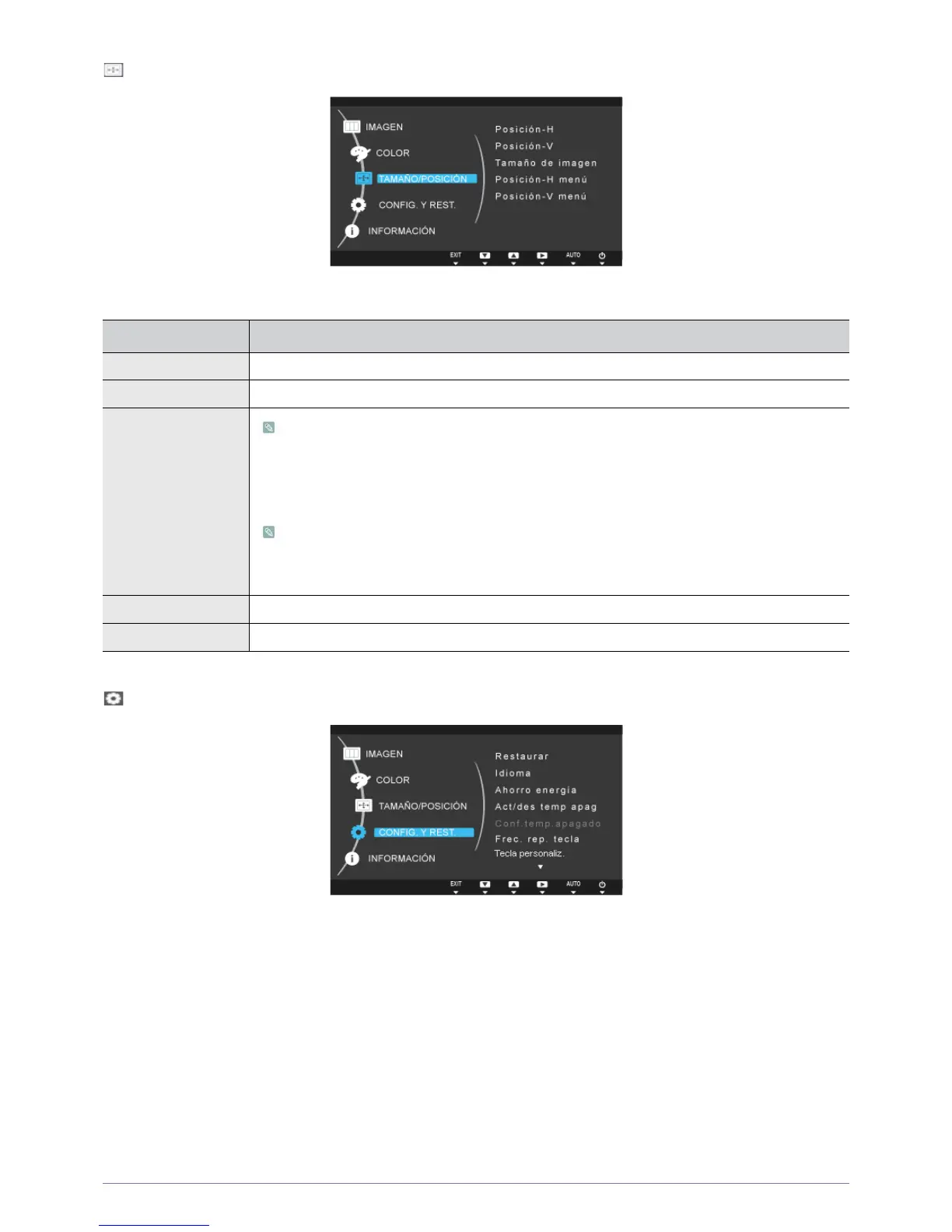 Posición- V Mueve verticalmente la posición del área de visualización de la pantalla.