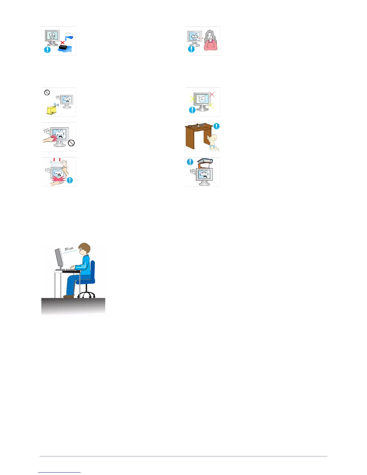 • Keep a distance of 45~50 cm from your eyes to the screen. Look down at the screen and