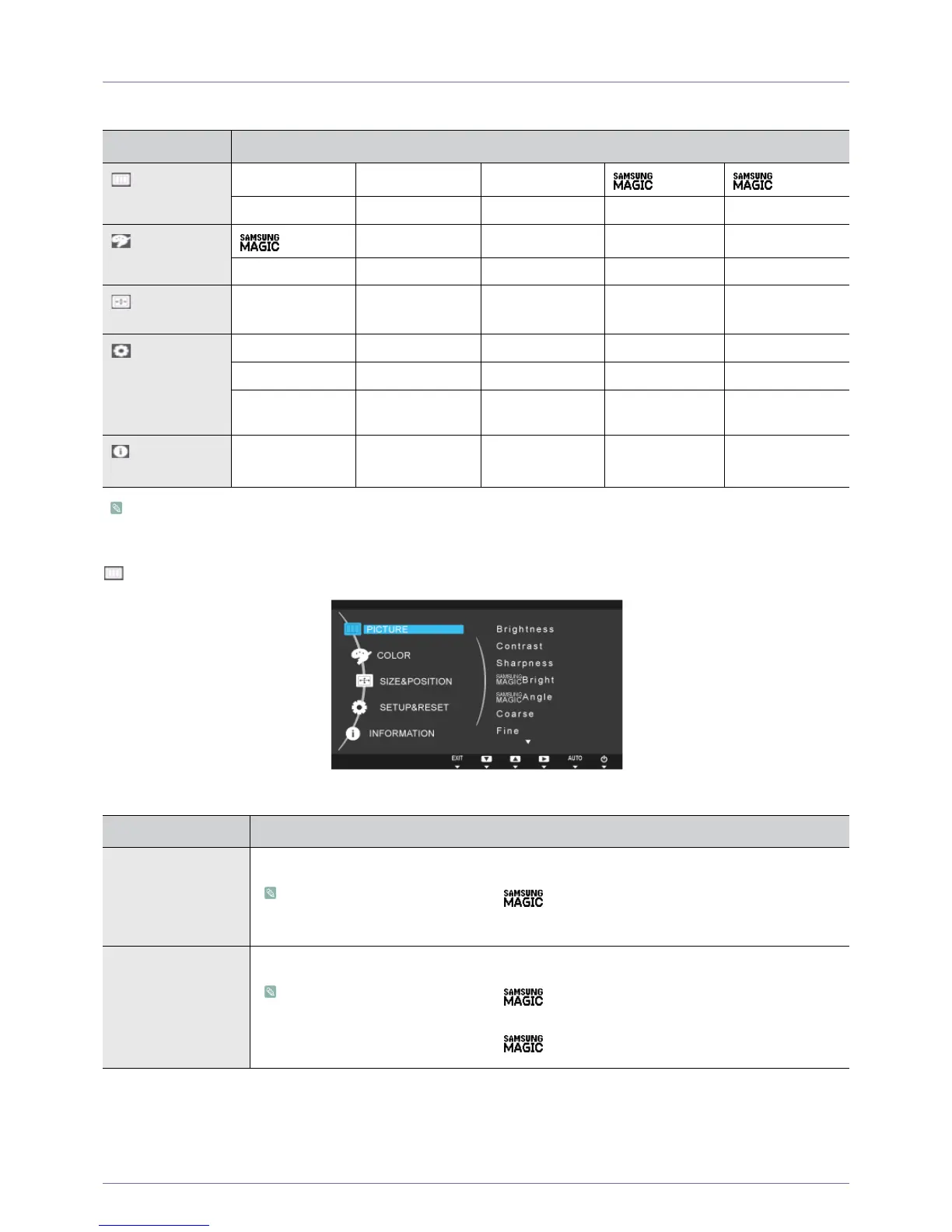 • This menu is unavailable when < Bright> is set to <Dynamic Contrast> mode.