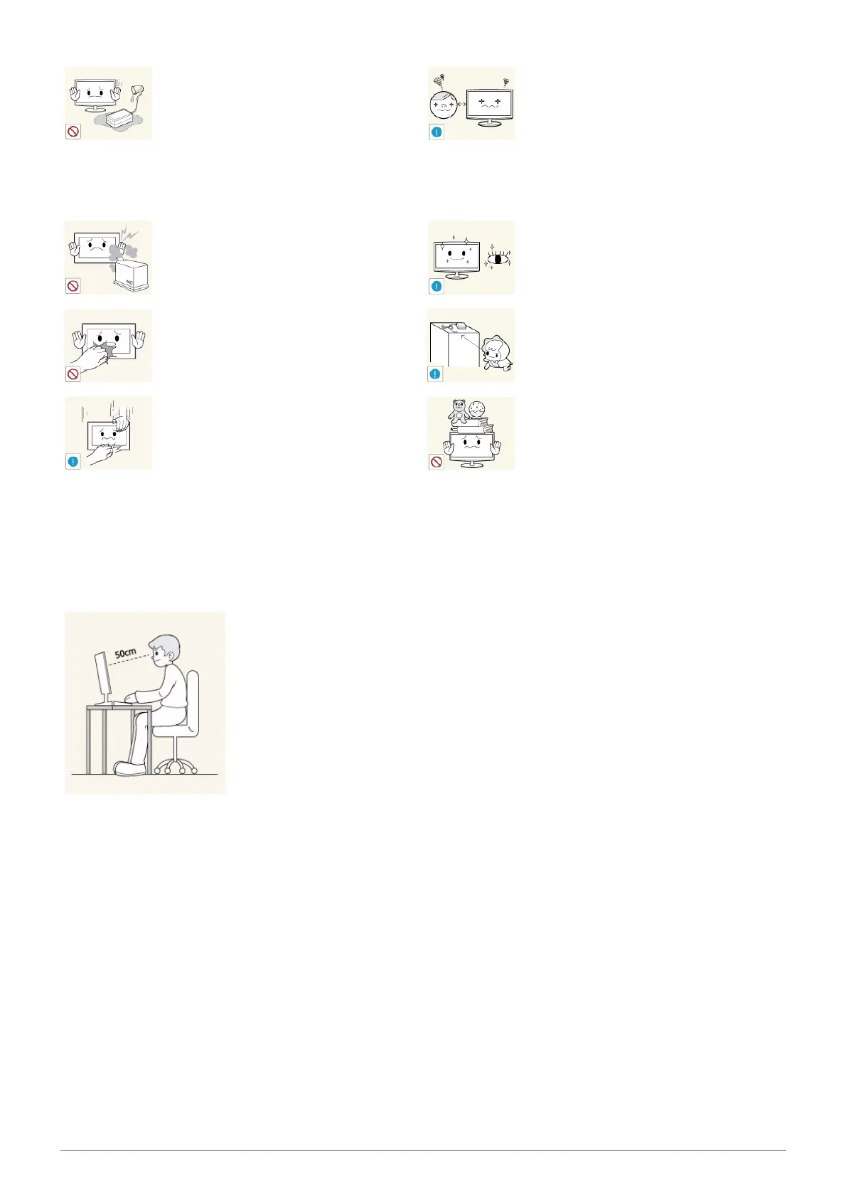 • Keep a distance of 45~50 cm from your eyes to the screen. Look down at the screen and