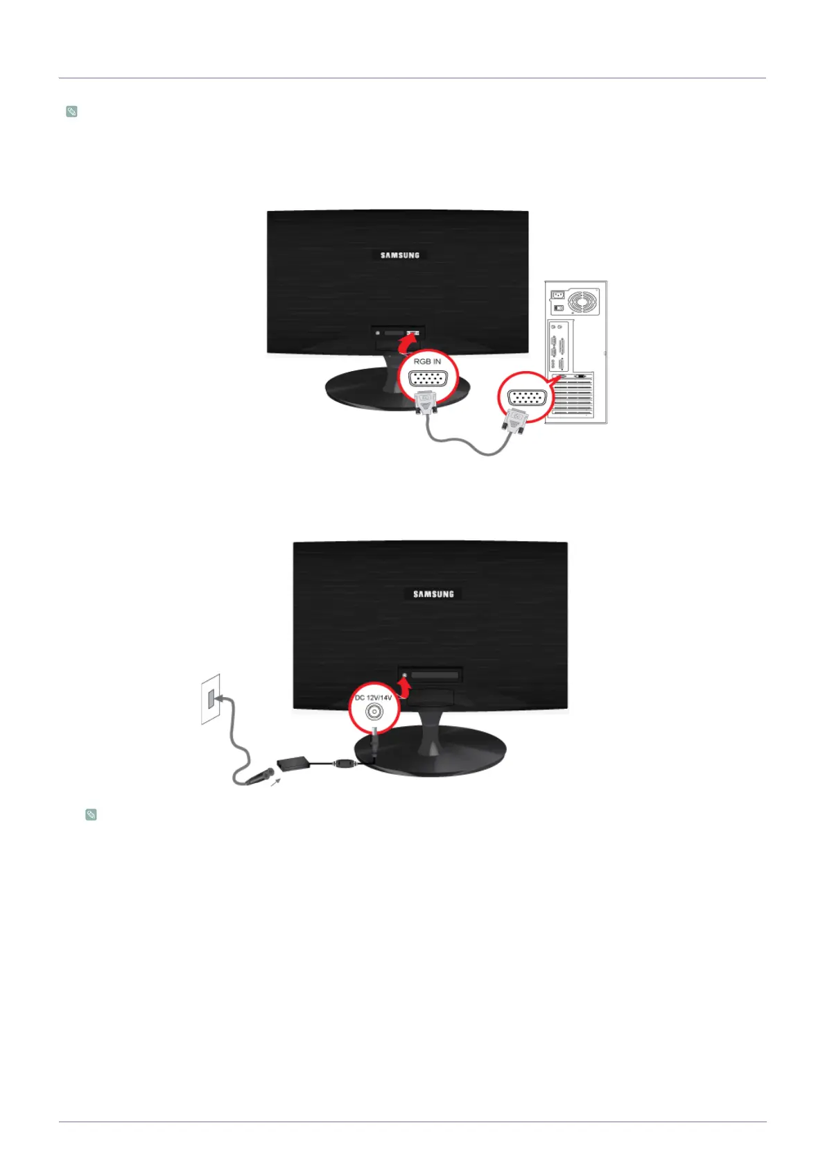 • Connect the [RGB IN] port of the product to the [D-Sub] port of the PC with the D-Sub cable.