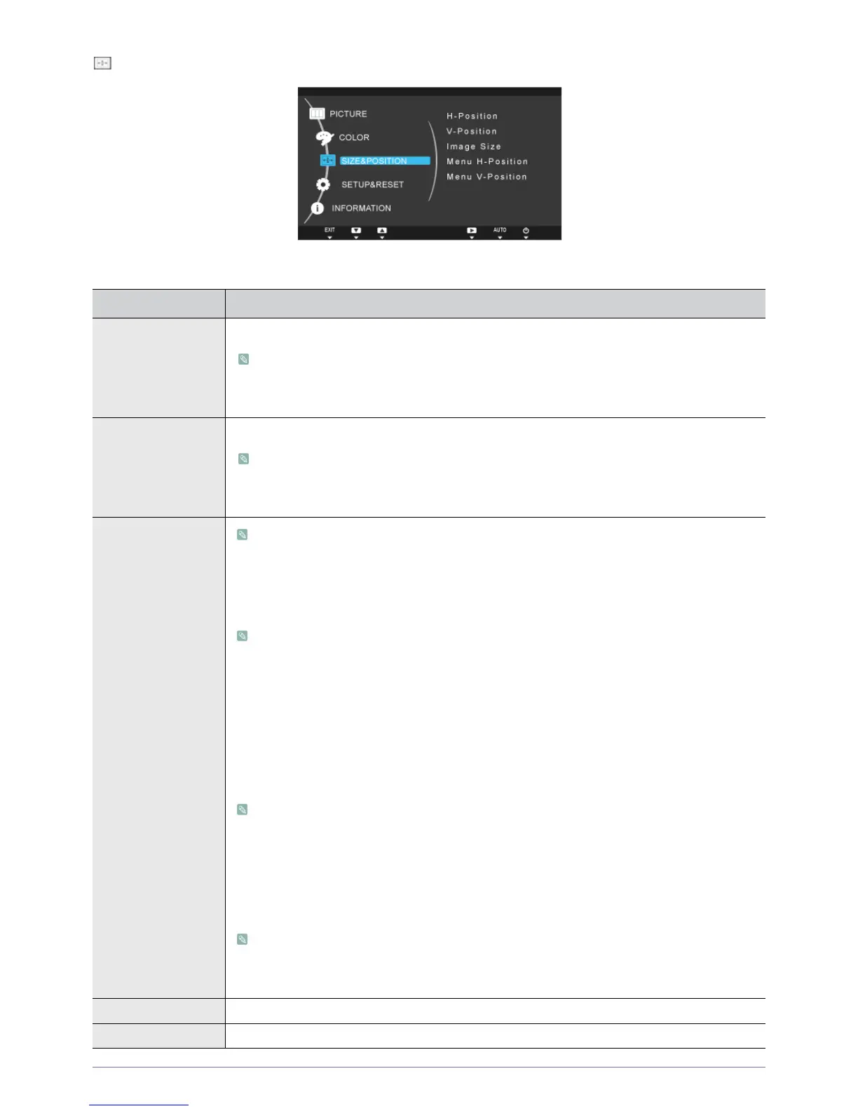 Menu H-Position You can adjust the horizontal position of the OSD.