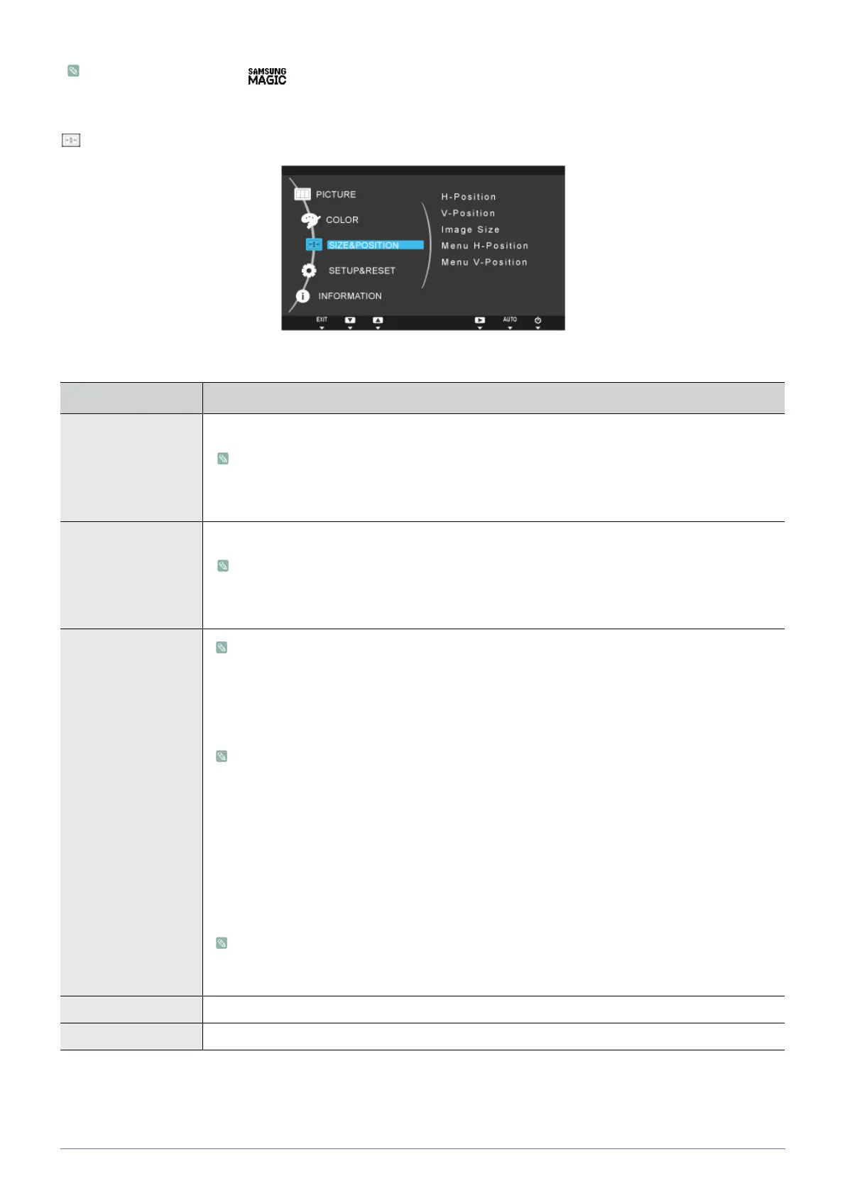 Menu H-Position You can adjust the horizontal position of the OSD.