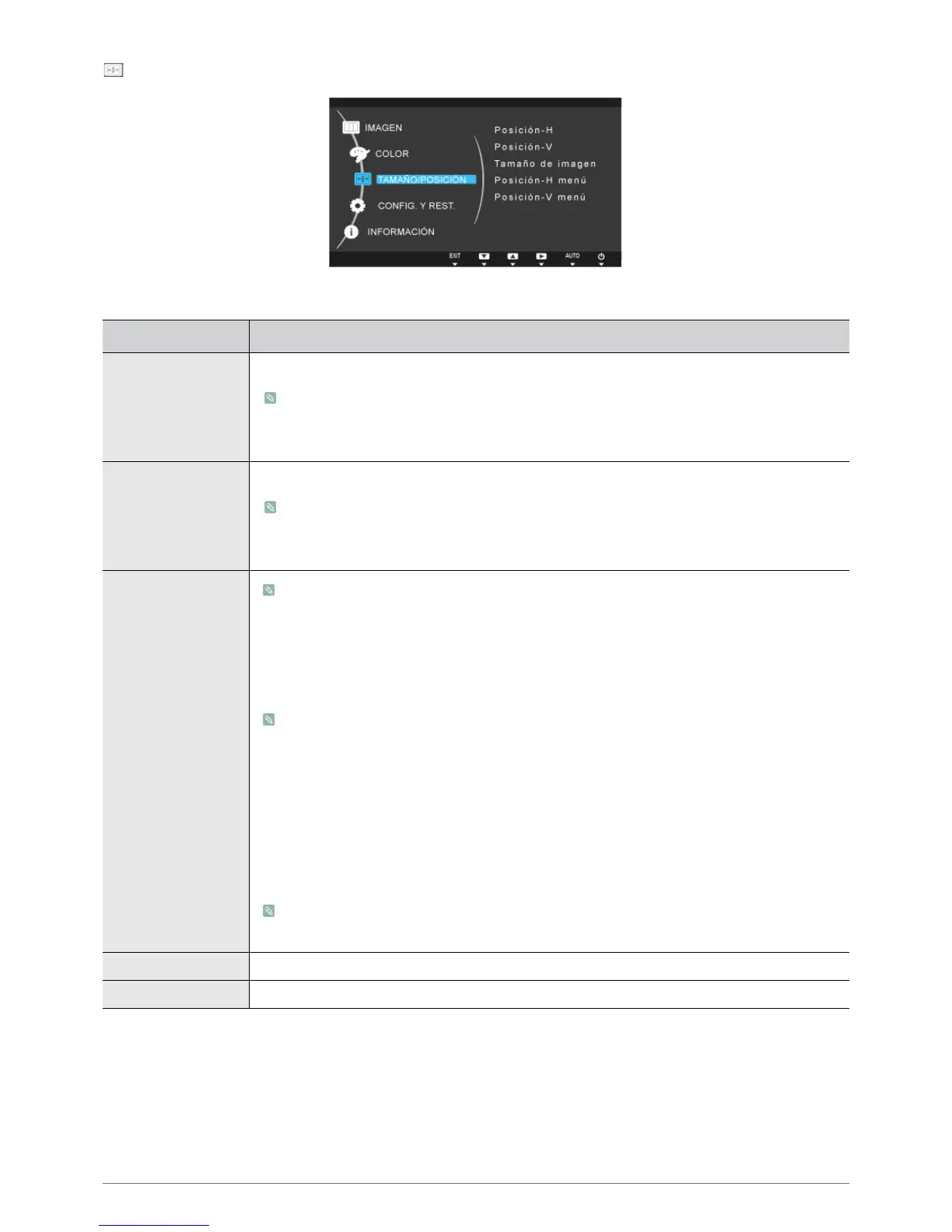 Posición-H menú Puede ajustar la posición horizontal de la OSD.