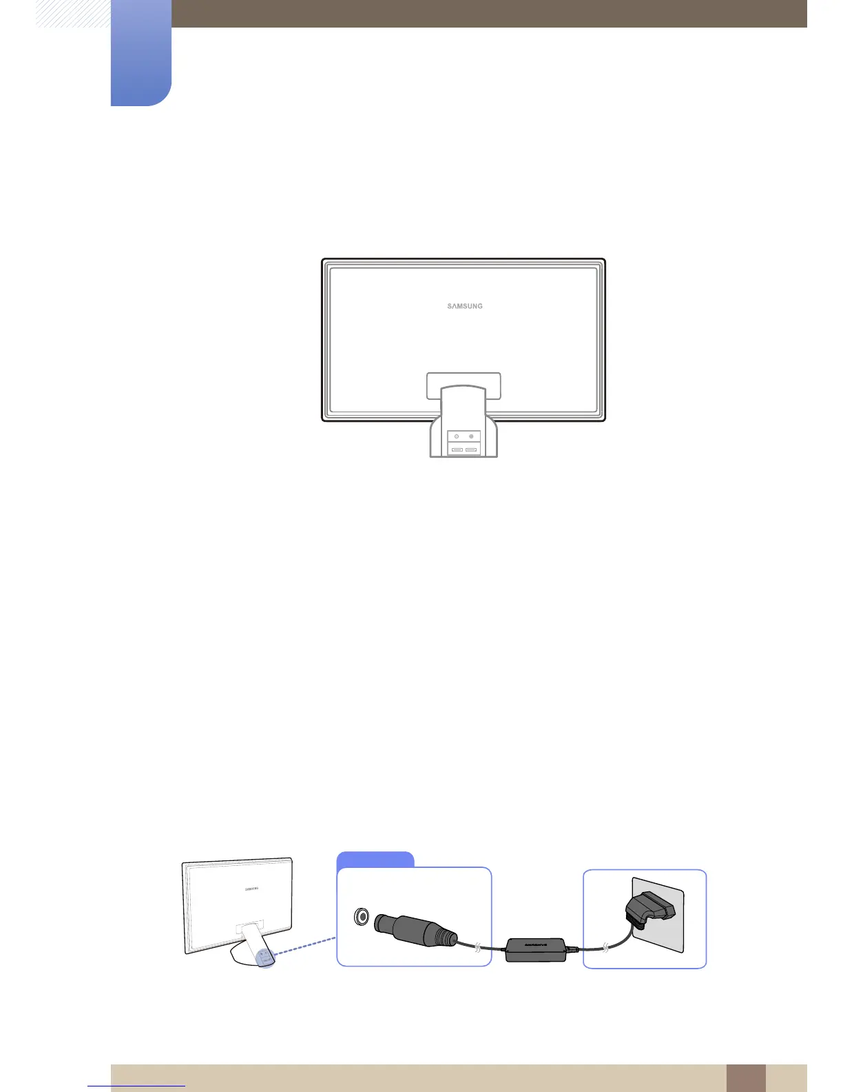 z Connect the power adapter to [DC 14V] on the rear of the product. Connect the power cord to the