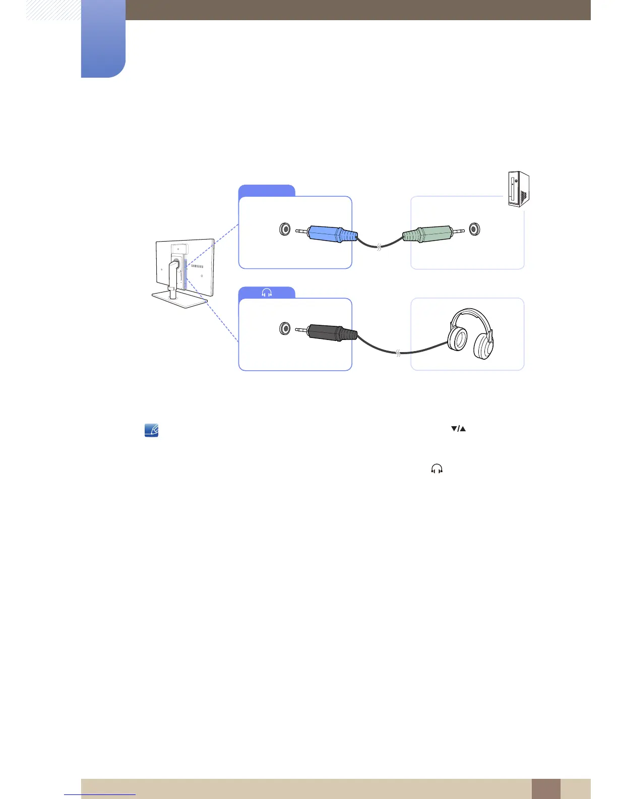 2 Connect an audio output device such as headphones or speakers to [ ] on the product.