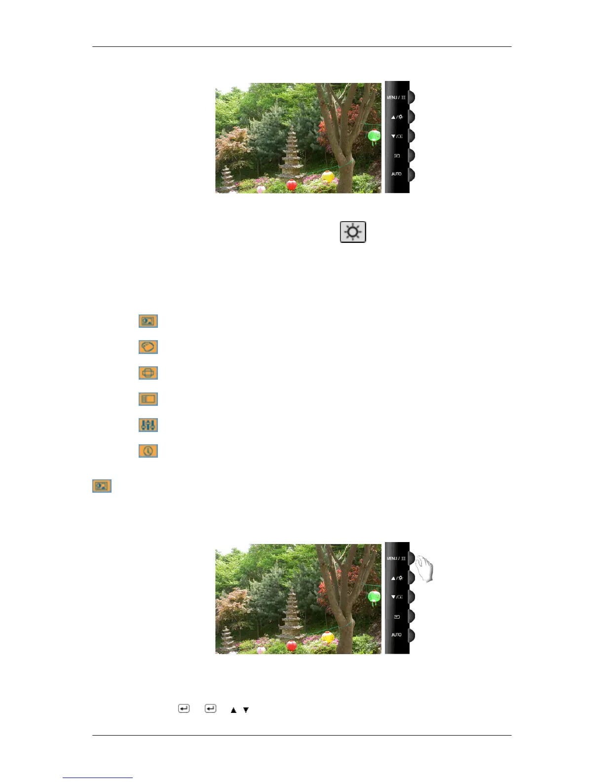 When OSD is not on the screen, push the Brightness ( ) button to adjust brightness.