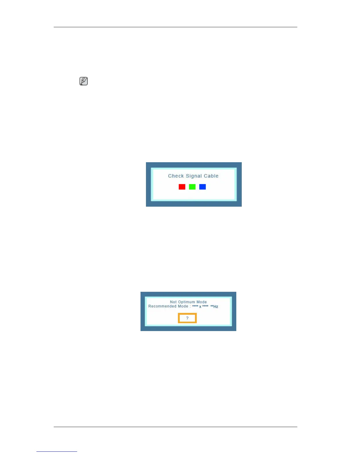 This box appears during normal operation if the video cable becomes disconnected or damaged.