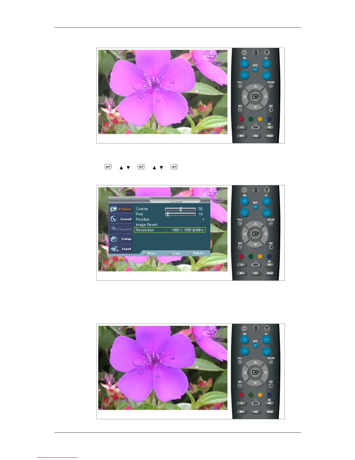Displays the resolution set on the PC.