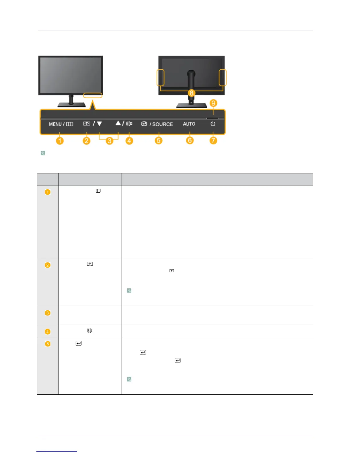 When OSD is not on the screen, push the button to adjust volume.