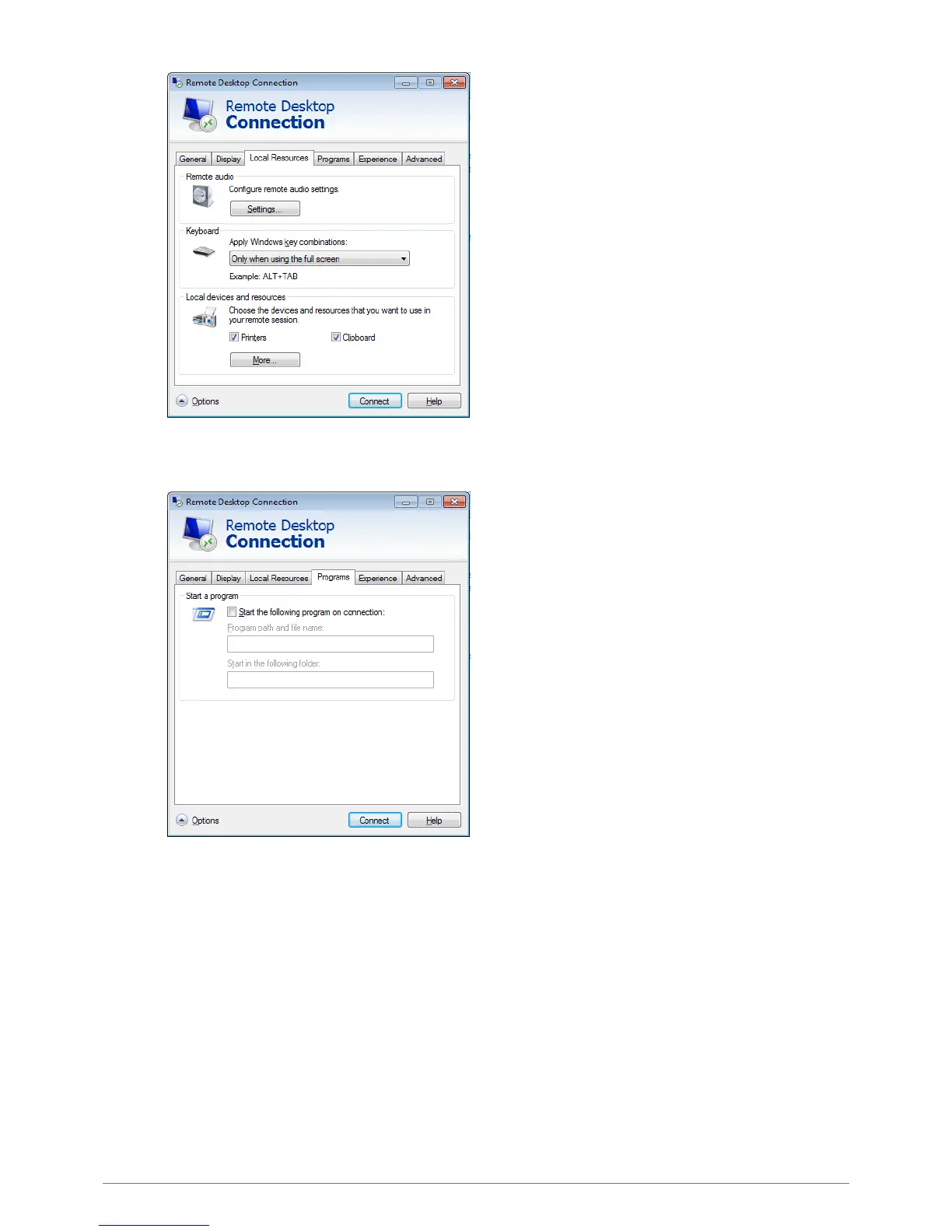 - Programs : Select an application and specify the folder where you want to run the application when a connection is