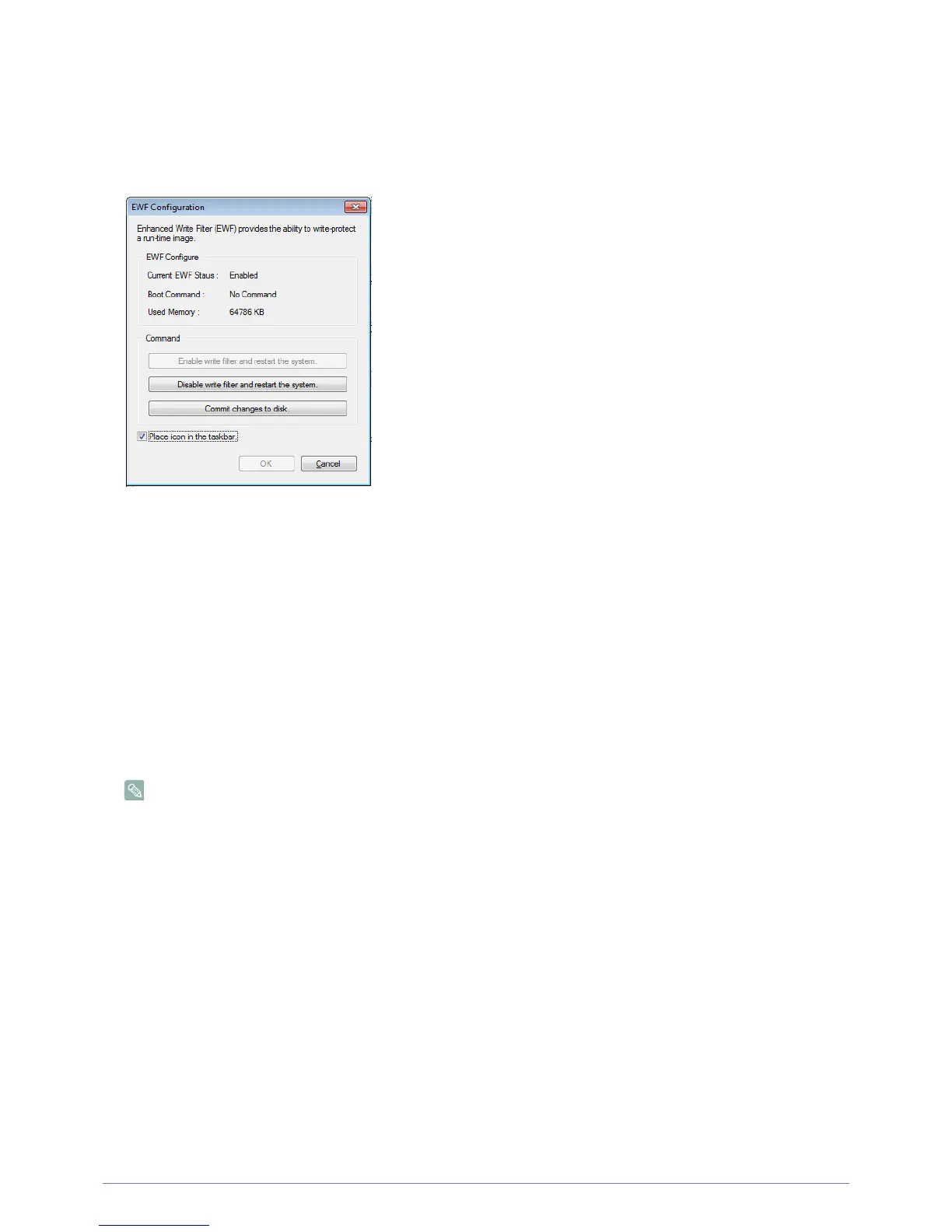 • Current FBWF status : Displays the current status of the FBWF (Enabled or Disabled).