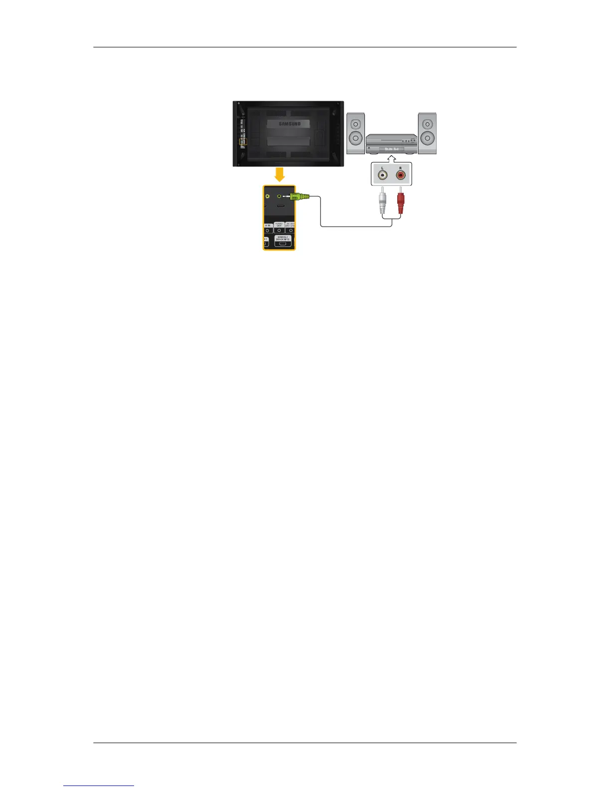 1. Connect a set of audio cables between the AUX L, R jacks on the AUDIO SYS-