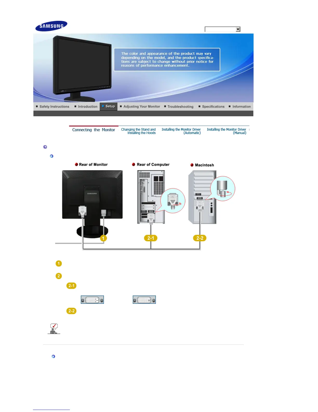 Connect the monitor to the Macintosh computer using the DVI connection cable.