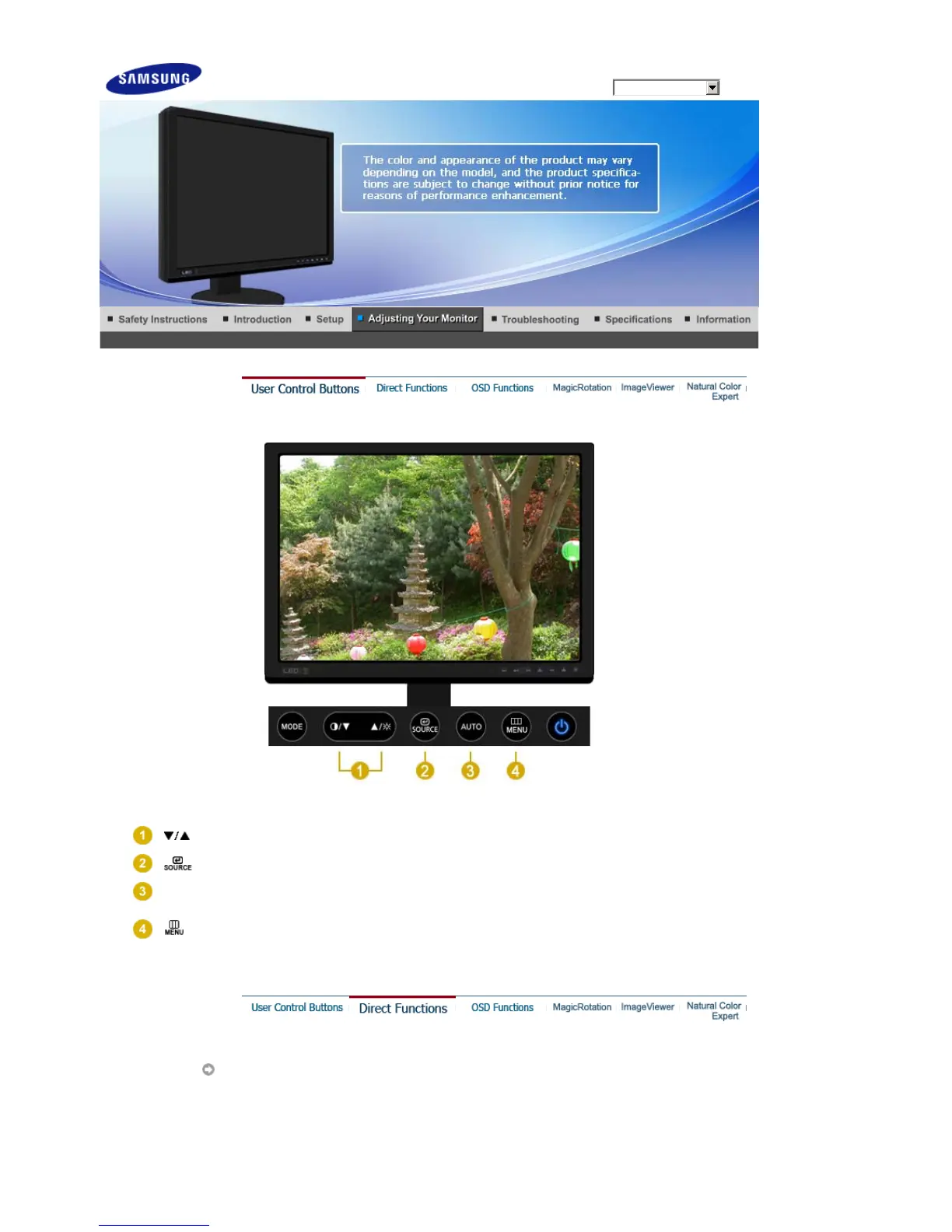 Samsung SyncMaster XL20 - Adjusting Your Monitor; User Control Buttons