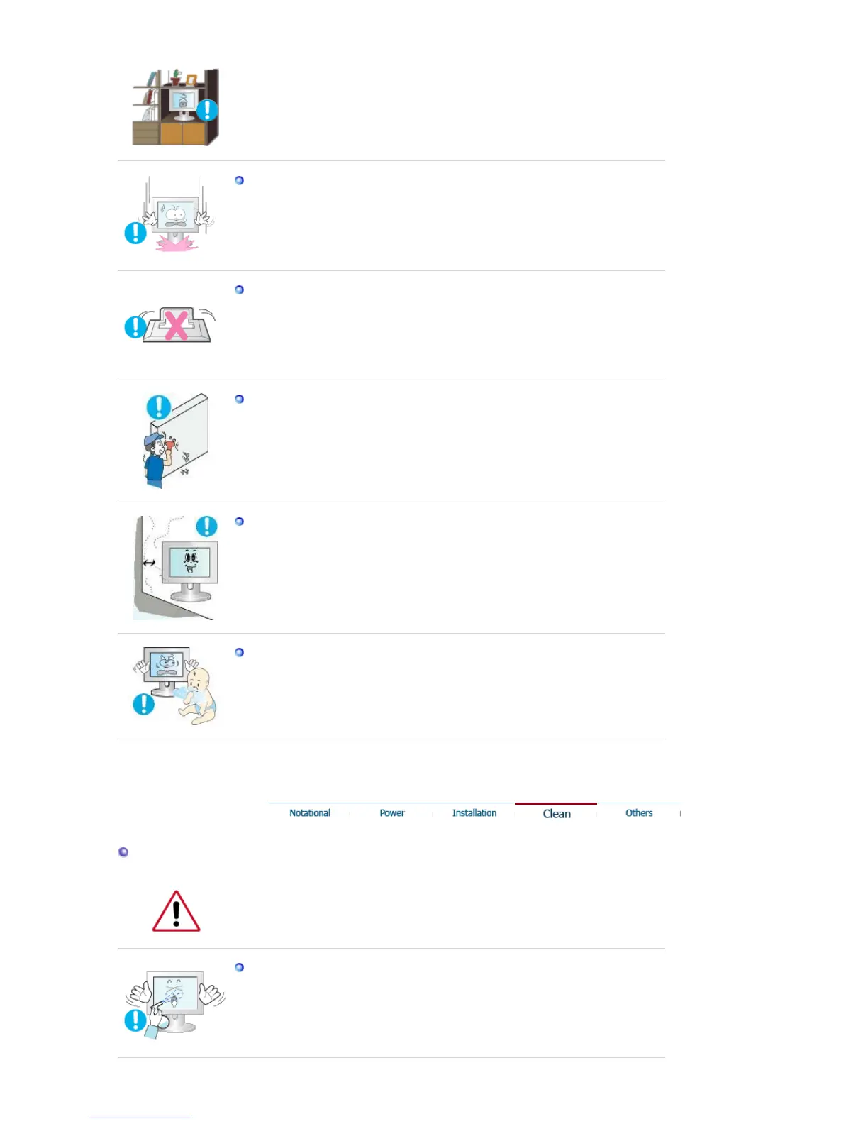 When cleaning the monitor case or the surface of the TFT-LCD screen, wipe with