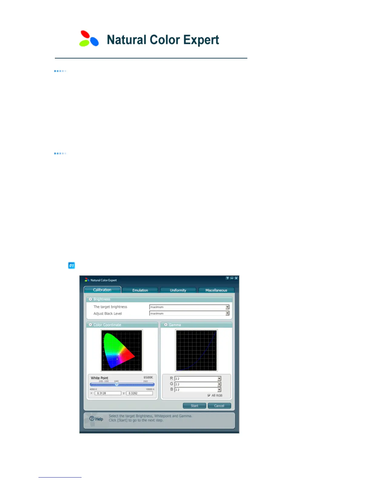 Natural Color Expert contains four (4) tabs: Calibration, Emulation, Uniformity, and Miscellaneous. The