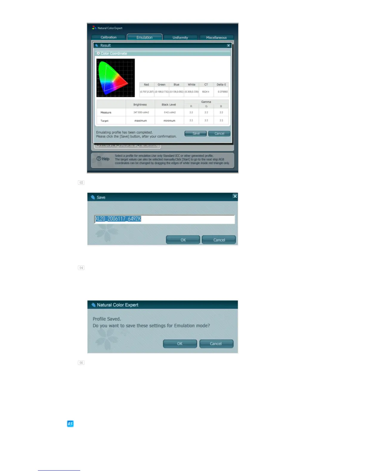 color mode of your monitor will change to the just saved current emulation mode. If the