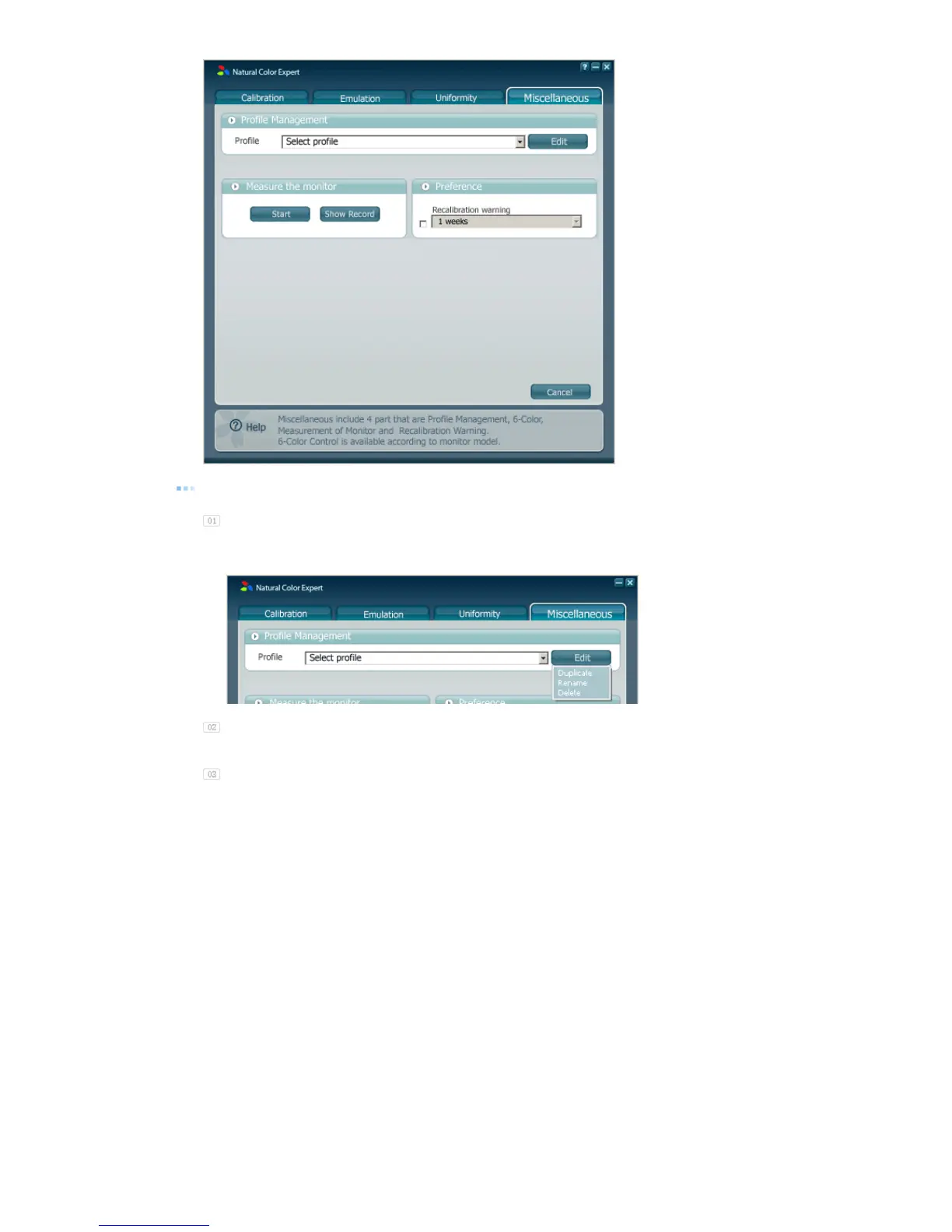- Allows you to copy, delete, and rename a profile created from the Calibration or Emulation
