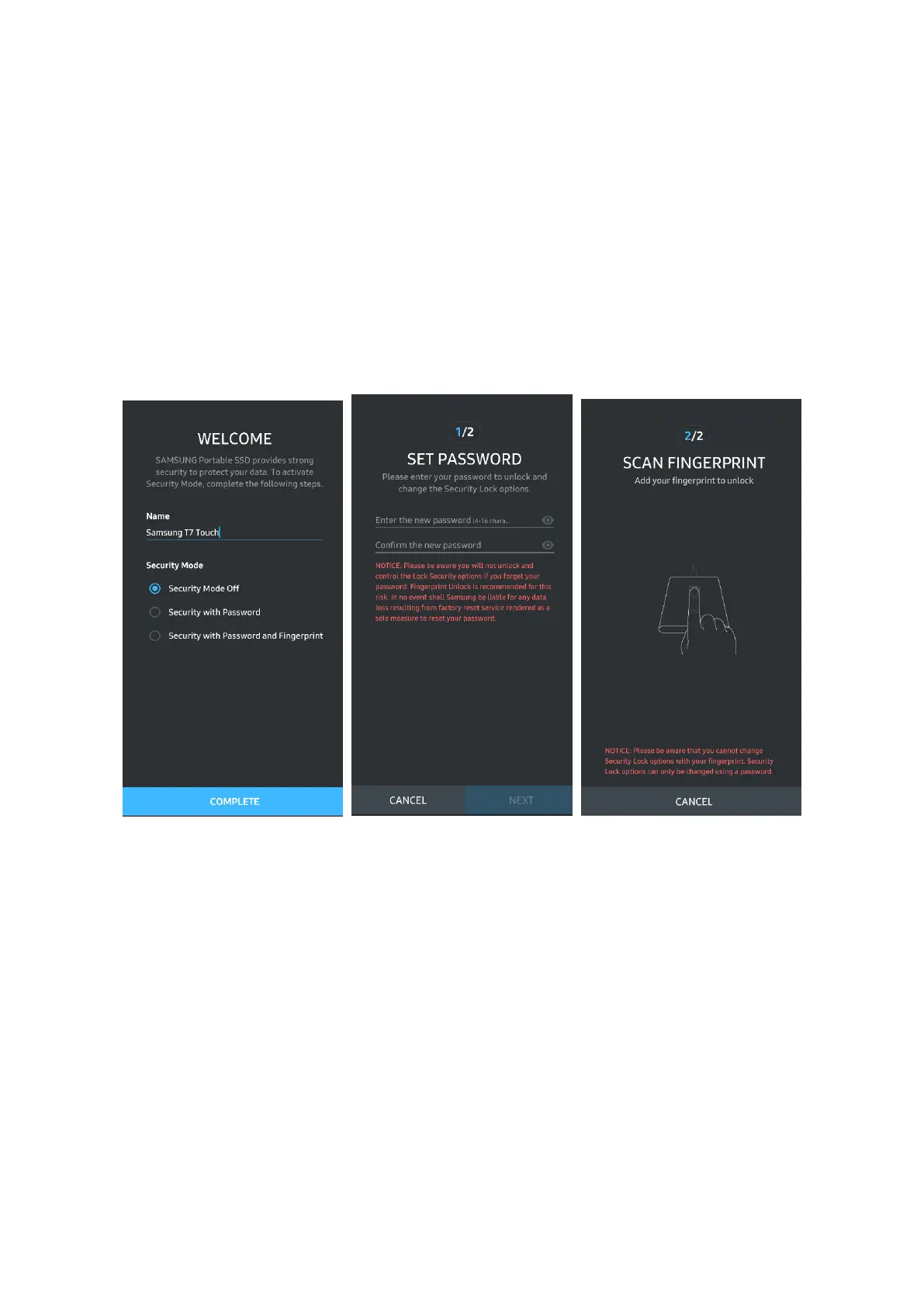 customer service centers. Please keep it in mind that all user data placed in T7 Touch will be lost by factory
