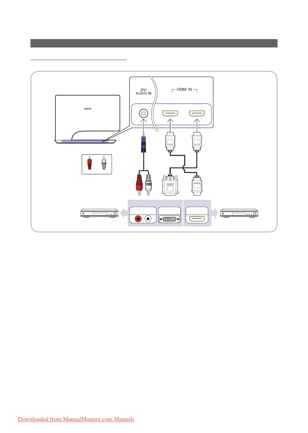 – A digital device that is not compatible with HDMI output can be connected using an HDMI/DVI cable and an audio