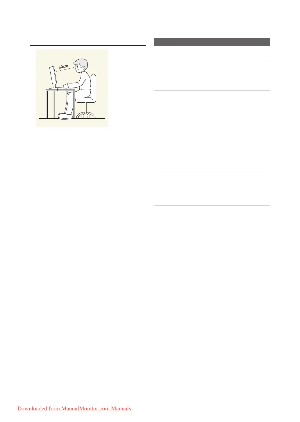 y Keep a distance of 45~50 cm (15~19 inches) from your