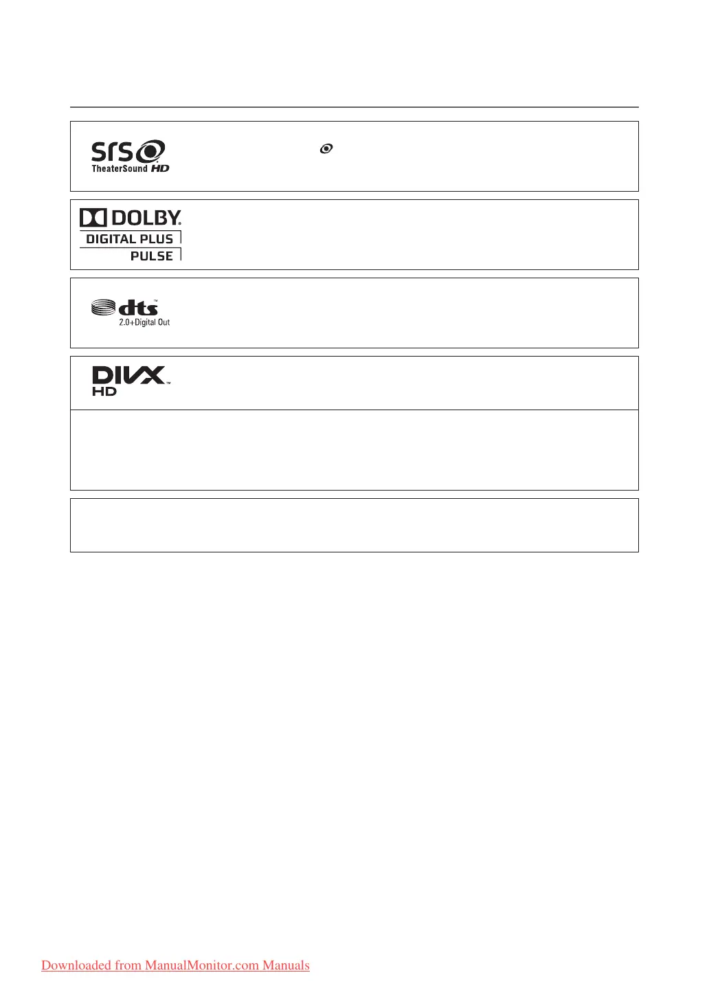 TheaterSound HD, SRS and symbol are trademarks of SRS Labs, Inc.