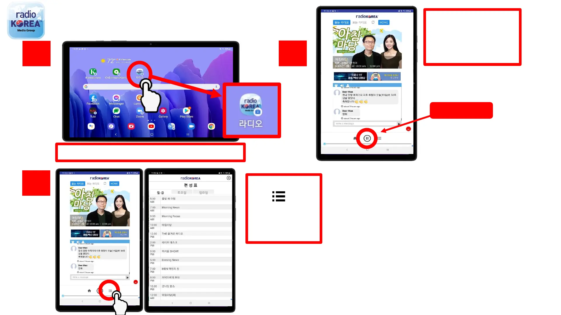 Tap the “Radio Korea” app