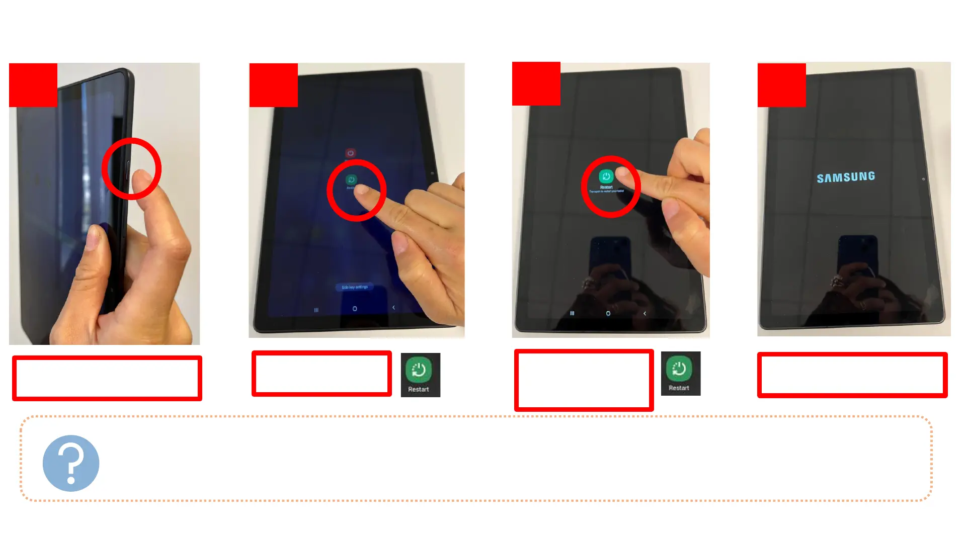 • If you are experiencing any issues with your tablet, the first thing to try is restarting it!