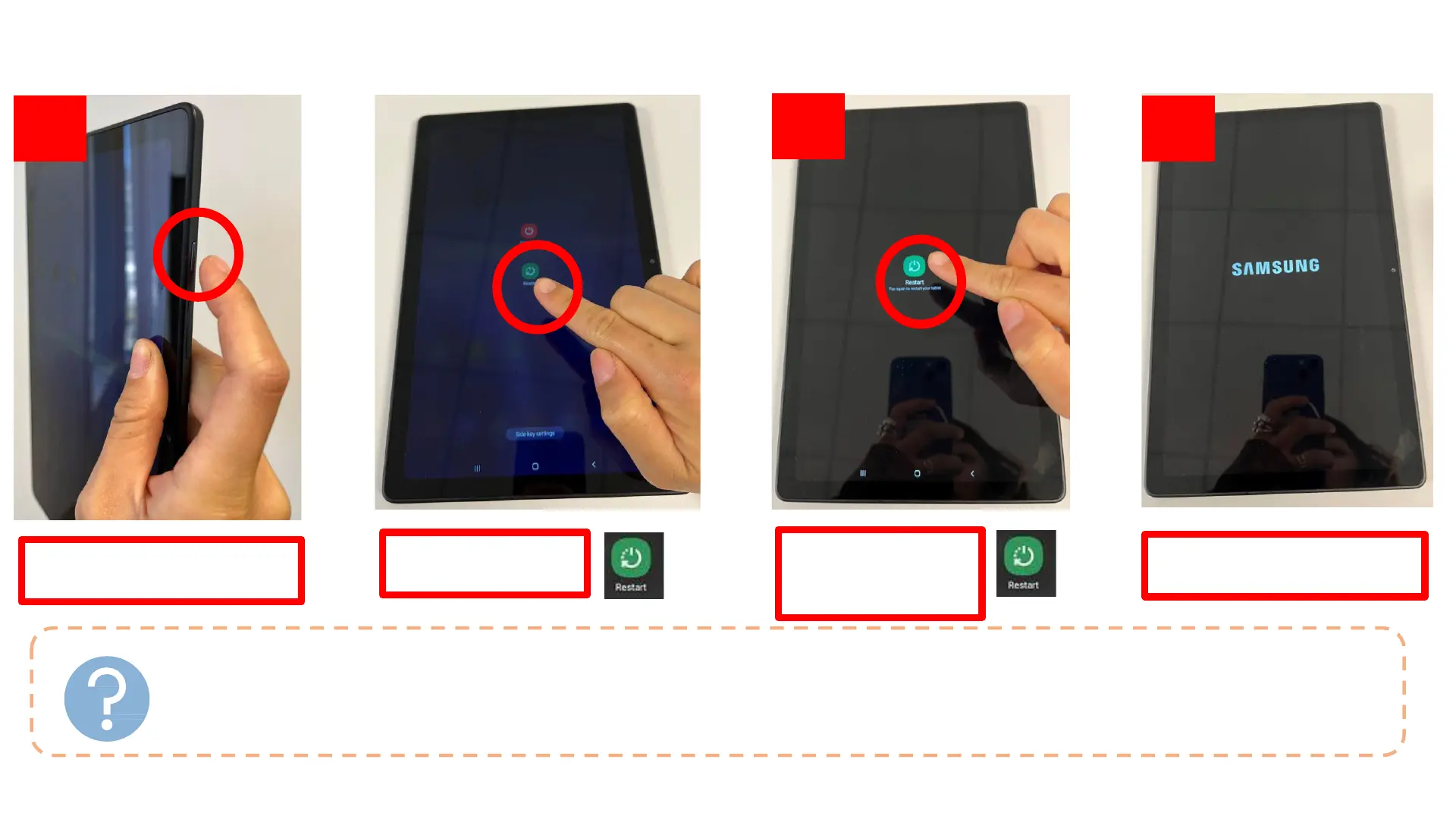 • If you are experiencing any issues with your tablet, the first thing to try is restarting it!