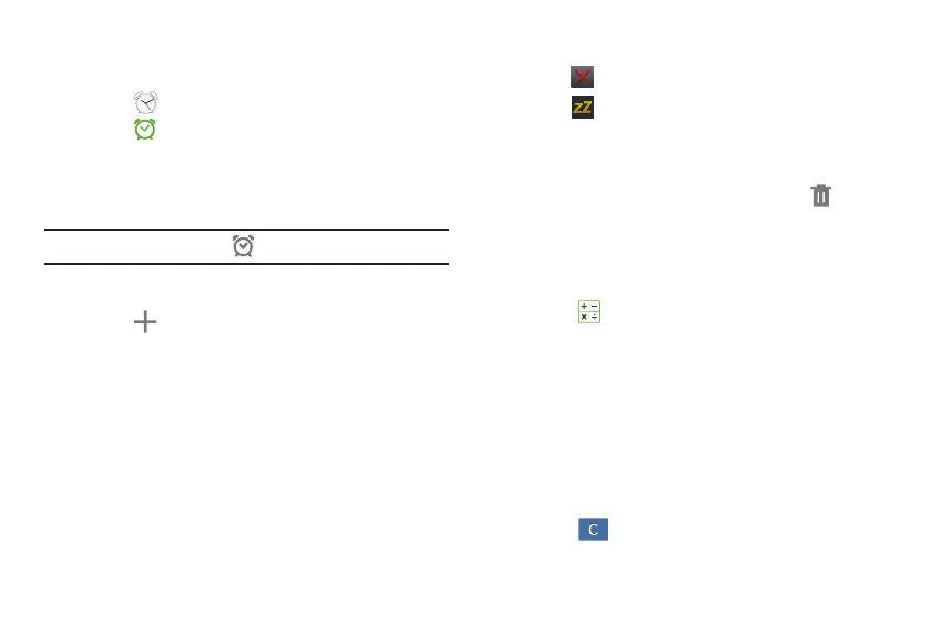 Note: When an alarm is set, displays in the Status Bar.