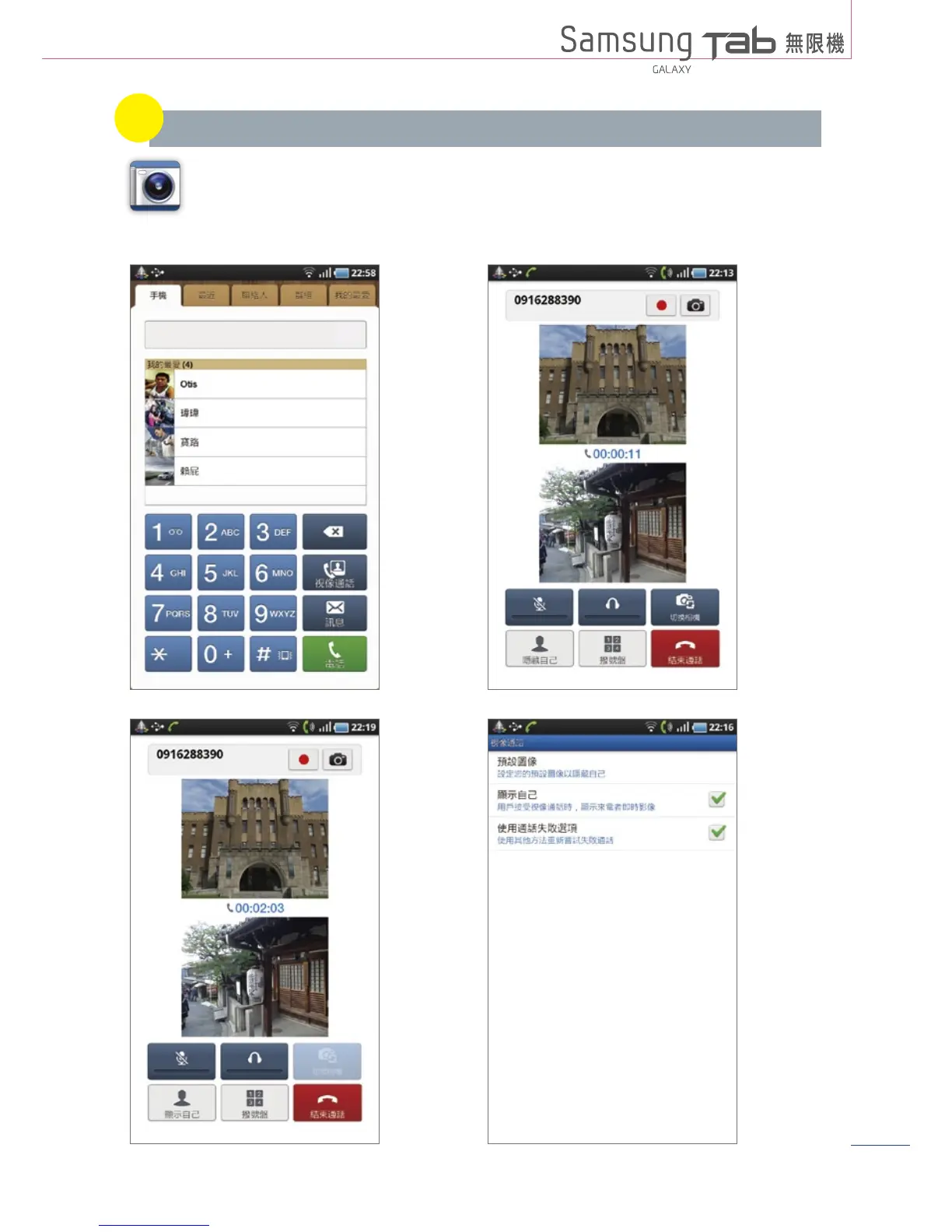 利用手機正面的視訊鏡頭,搭GALAXY Tab的視訊電話功能,可以輕鬆與客戶進行遠