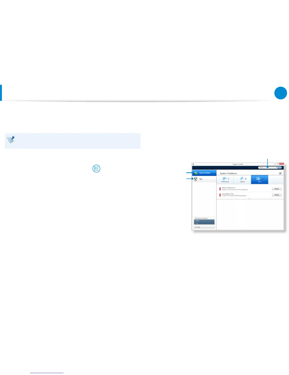 Support Center is activated and starts diagnosing your