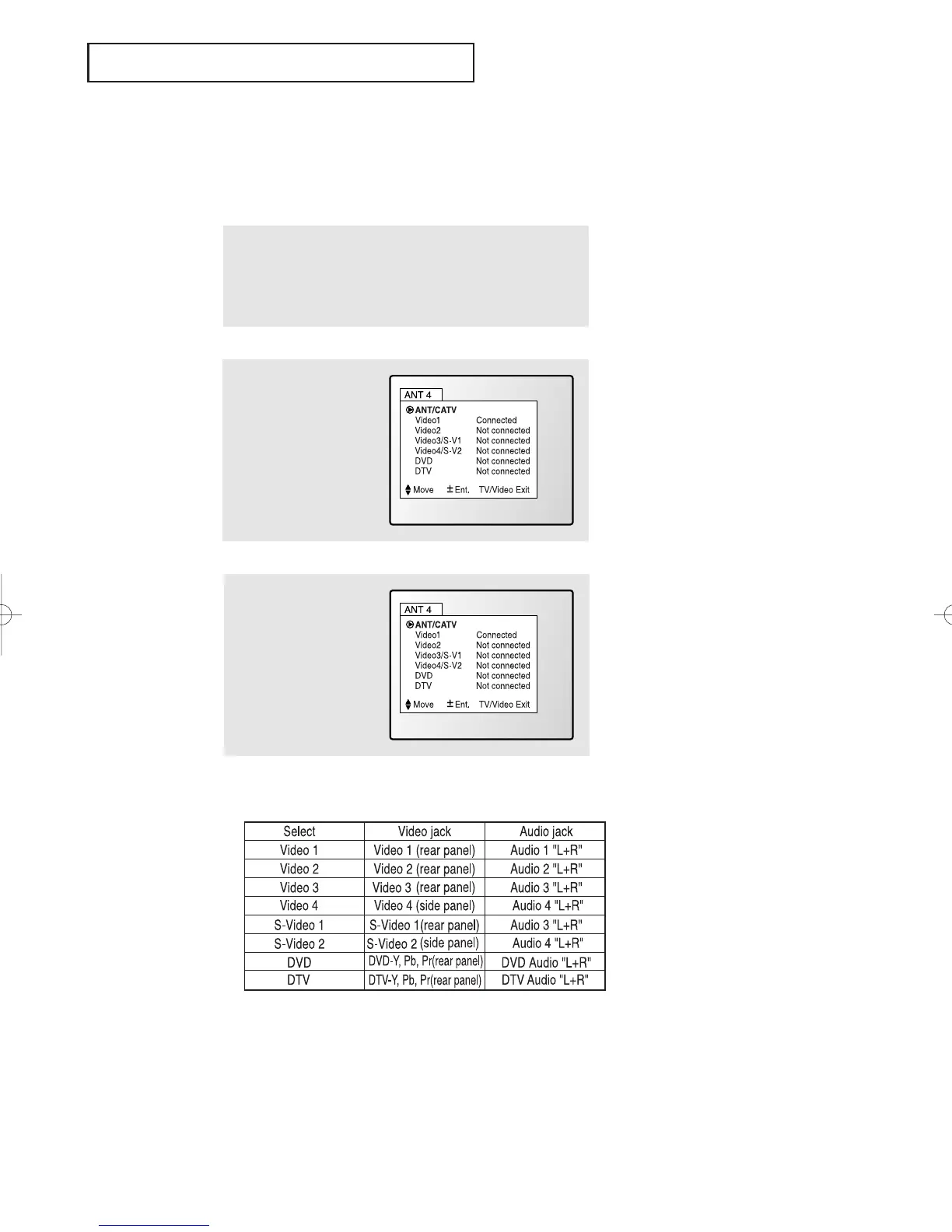 When you press the TV/Video button, the on-screen display identifies all the